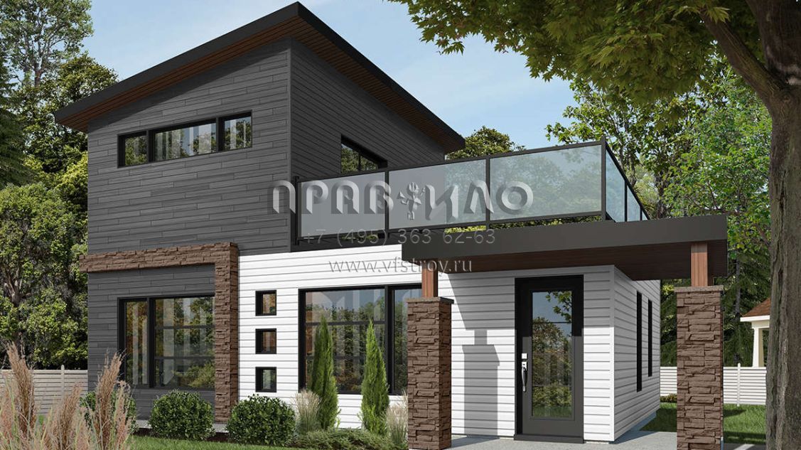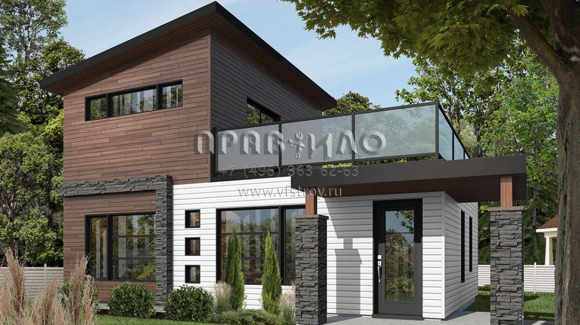 Проект двухэтажного дома с комбинированной крышей S5-86 (034-01071)