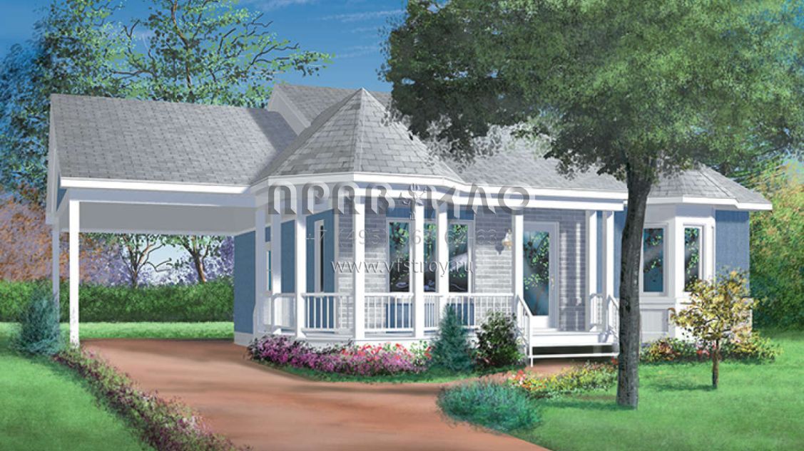 Проект одноэтажного дома с гаражом на одну машину в стиле Ранчо S5-86 (6146-00259)