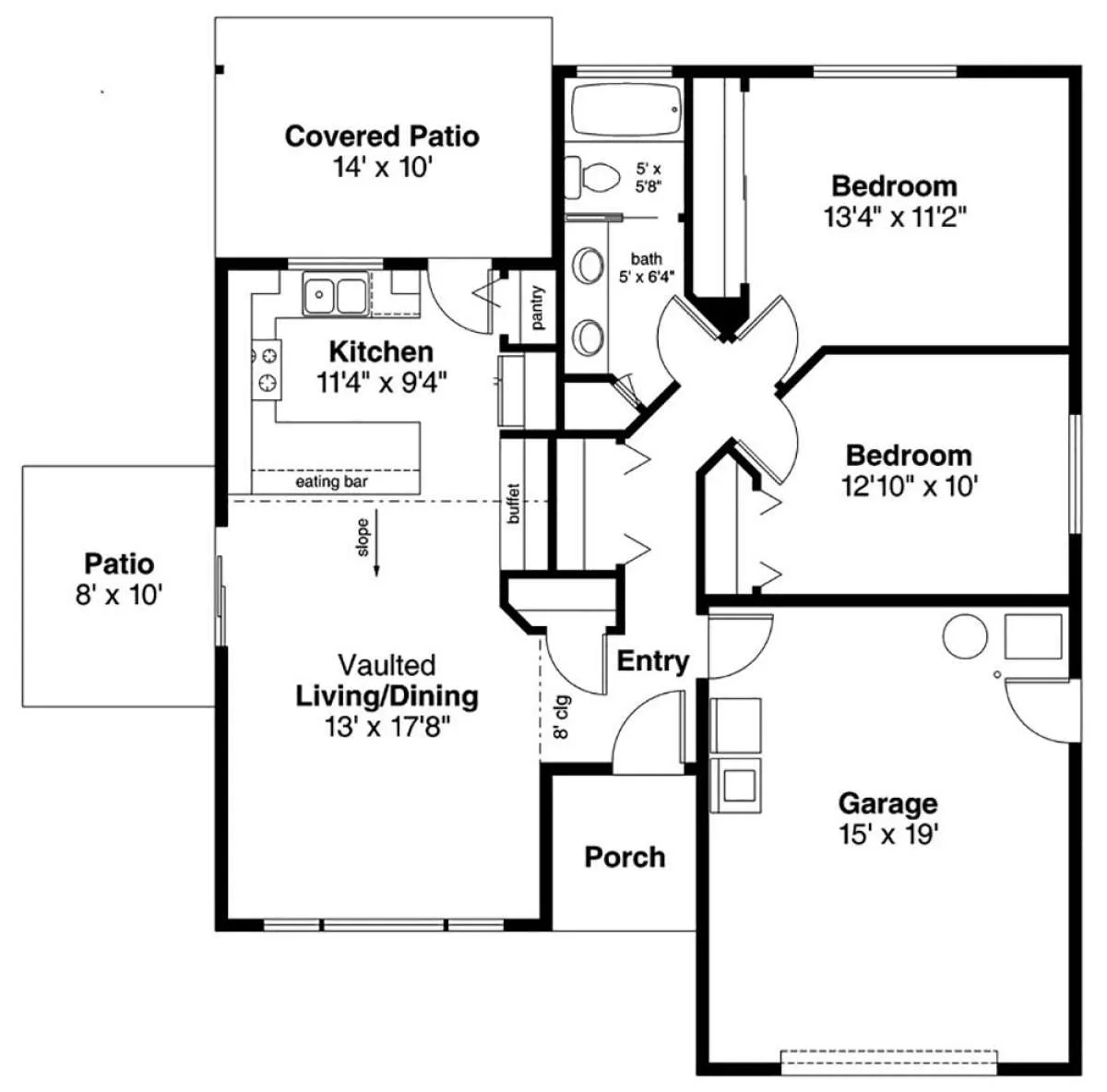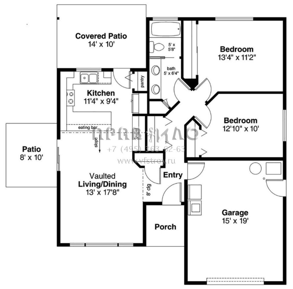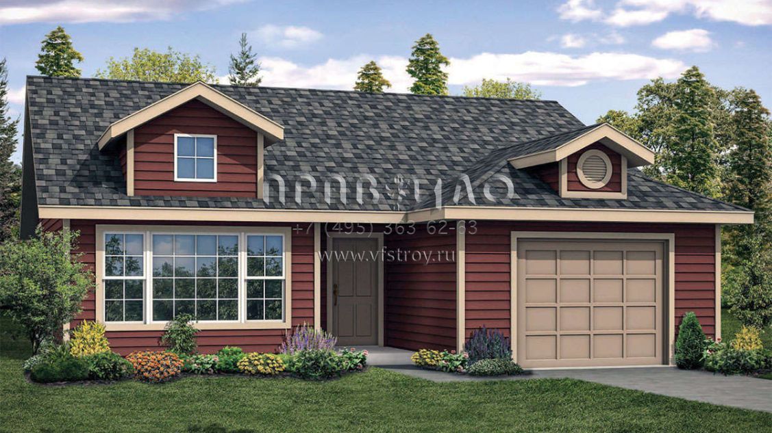 Проект одноэтажного дома с гаражом на одну машину в стиле Ранчо S5-87 (035-00827)