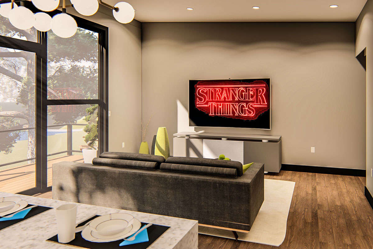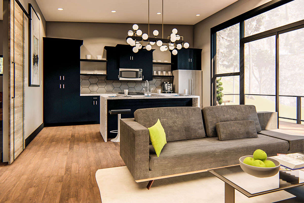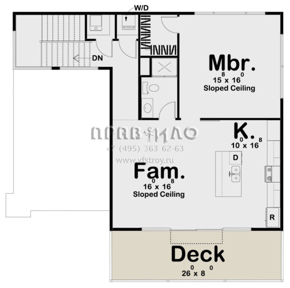 S5-87 (963-00357) Это иностранный проект, для которого требуется адаптация под нормы, действующие в Российской Федерации. Вы видите проект дома в современном стиле. В этом доме сочетаются черты сельской постройки и аскетичность лофта. Внутри жильцы смогут проводить время с максимальным комфортом. Обратим внимание, что сейчас на планировках все размеры представлены в футах. Для перевода в метры вам необходимо значение в футах умножить на 0,3048.