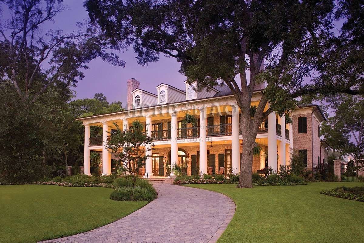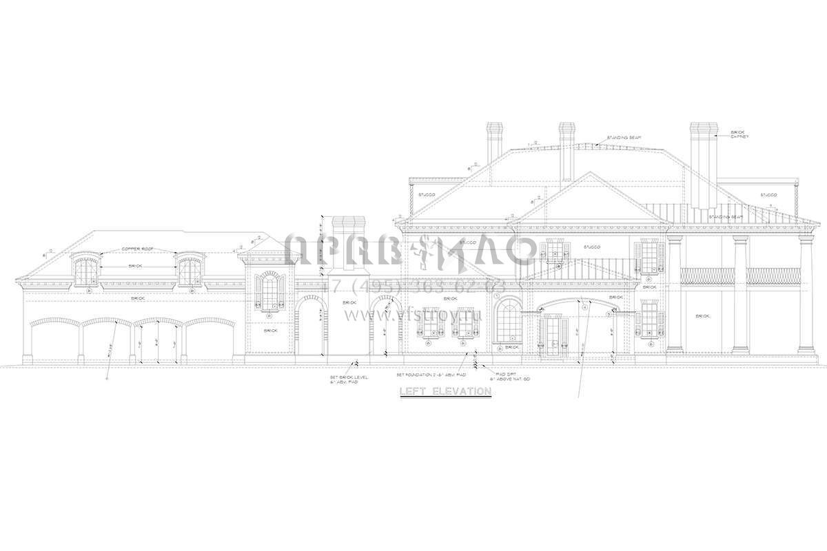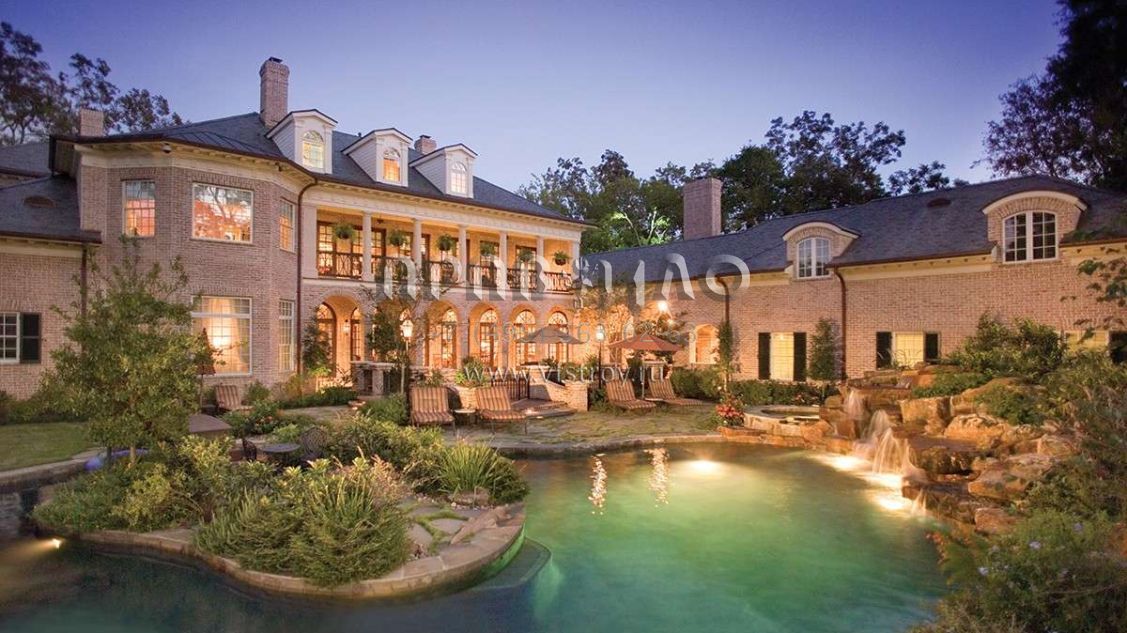 Это проект двухэтажного дома с гаражом на три и более машин жилой площадью 870 кв.м. Длина дома 47.2 м, ширина 35.7 м, высота 12.5 м. В доме шесть и более спален и шесть и более санузлов.
