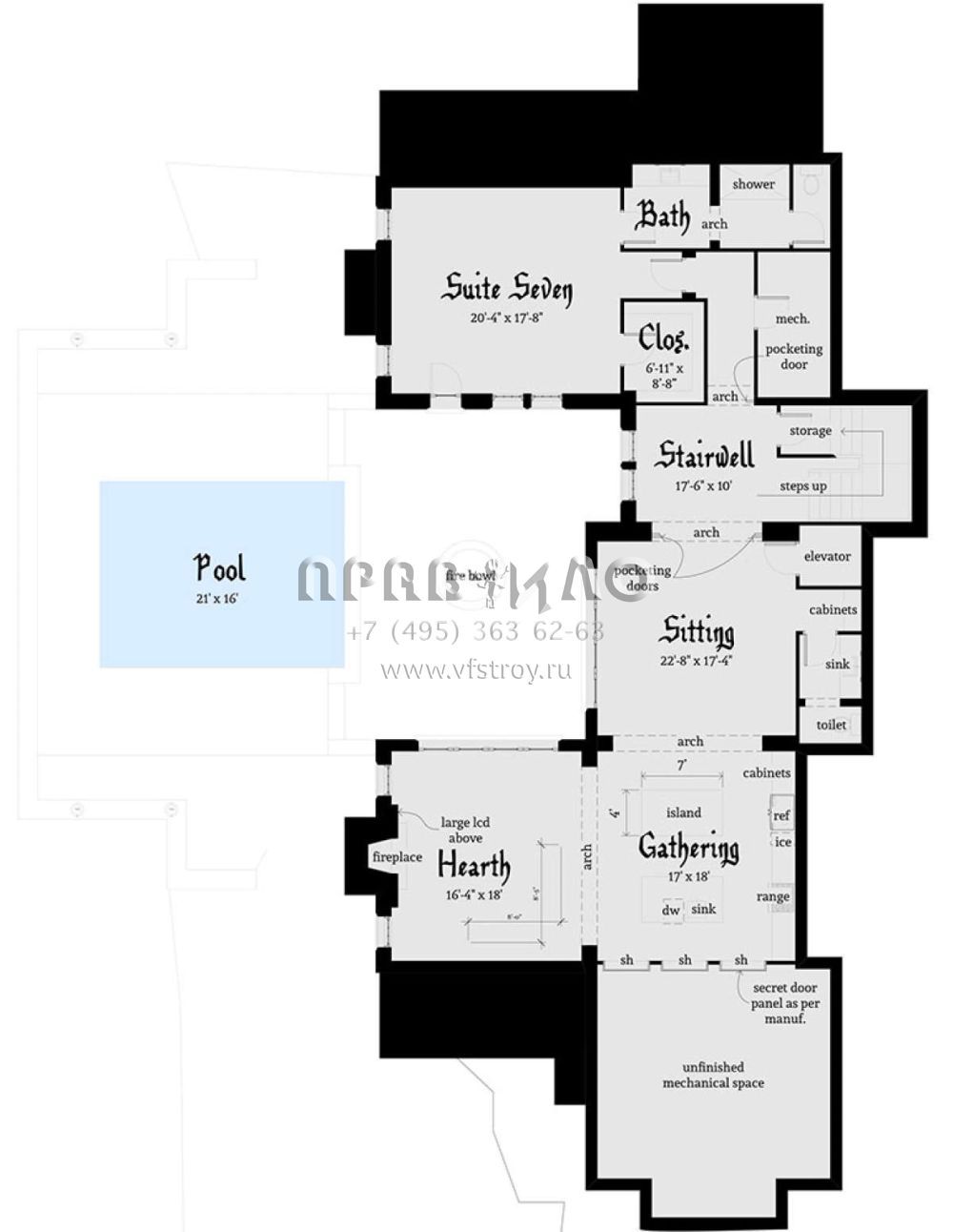 Поскольку этот проект разрабатывался иностранными архитекторами, для строительства дома требуется переработка проекта под действующие в России нормы. Данные визуализации проекта представлены для ознакомления с концепцией проекта. Проект разработан американским архитектурным бюро и представлен America's Best House Plans.