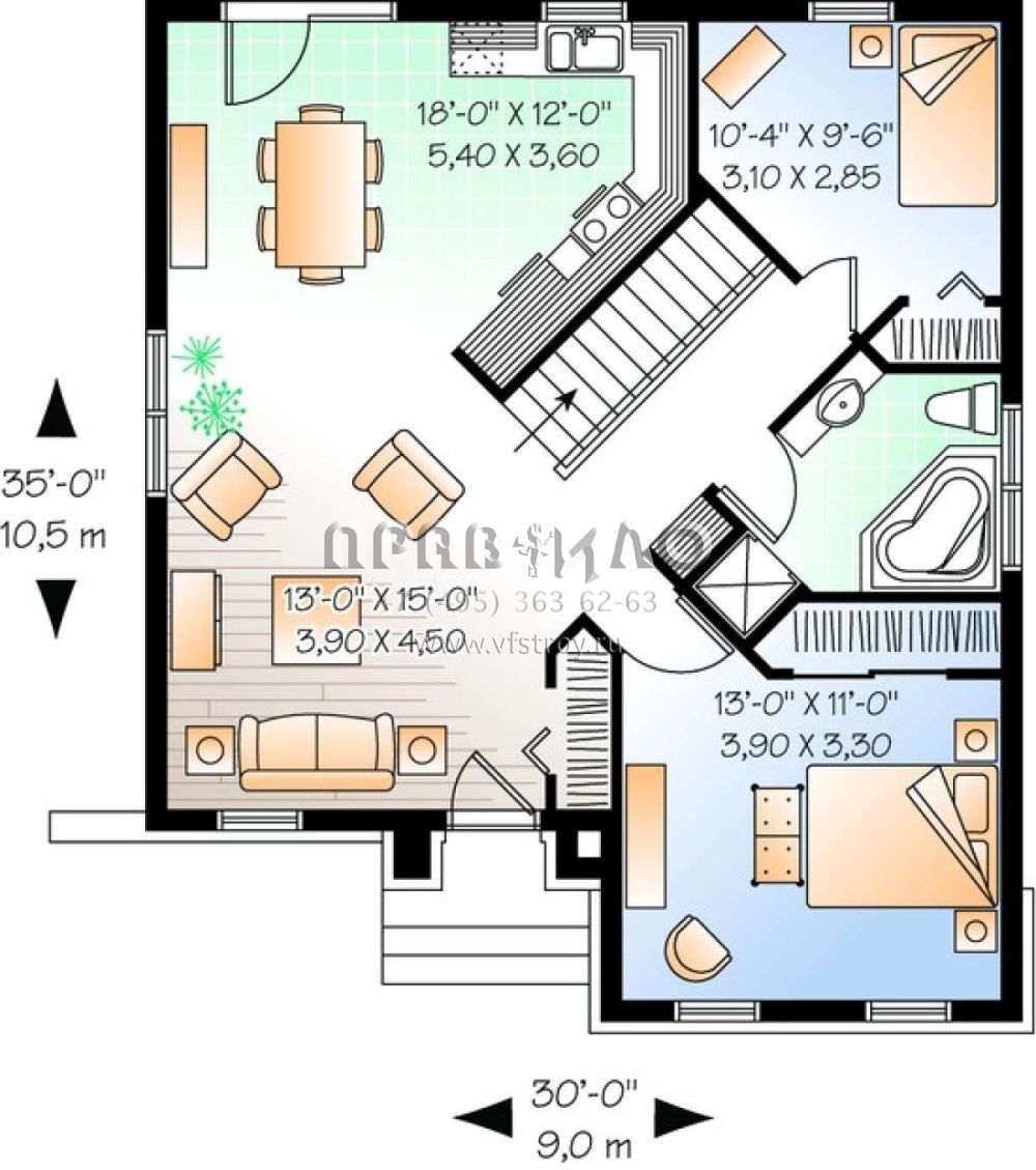 S5-88 (034-00292) Это иностранный проект, для которого требуется адаптация под нормы, действующие в Российской Федерации. Вы видите проект дома в английском стиле. В этом доме сочетаются черты сельской постройки и аскетичность лофта. Внутри жильцы смогут проводить время с максимальным комфортом. Обратим внимание, что сейчас на планировках все размеры представлены в футах. Для перевода в метры вам необходимо значение в футах умножить на 0,3048.