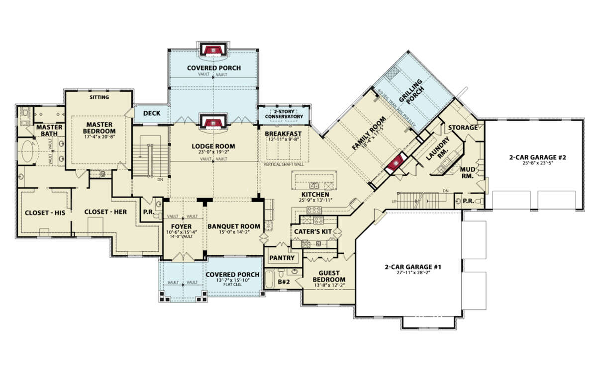 Проект двухэтажного дома с гаражом на три и более машин в американском стиле S5-883 (699-00375)