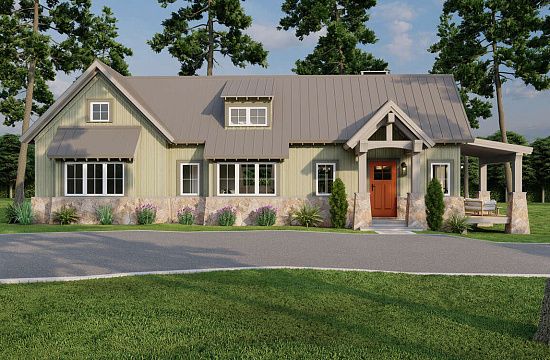 Проект одноэтажного дома без гаража в американском стиле S5-90 (2559-00102)