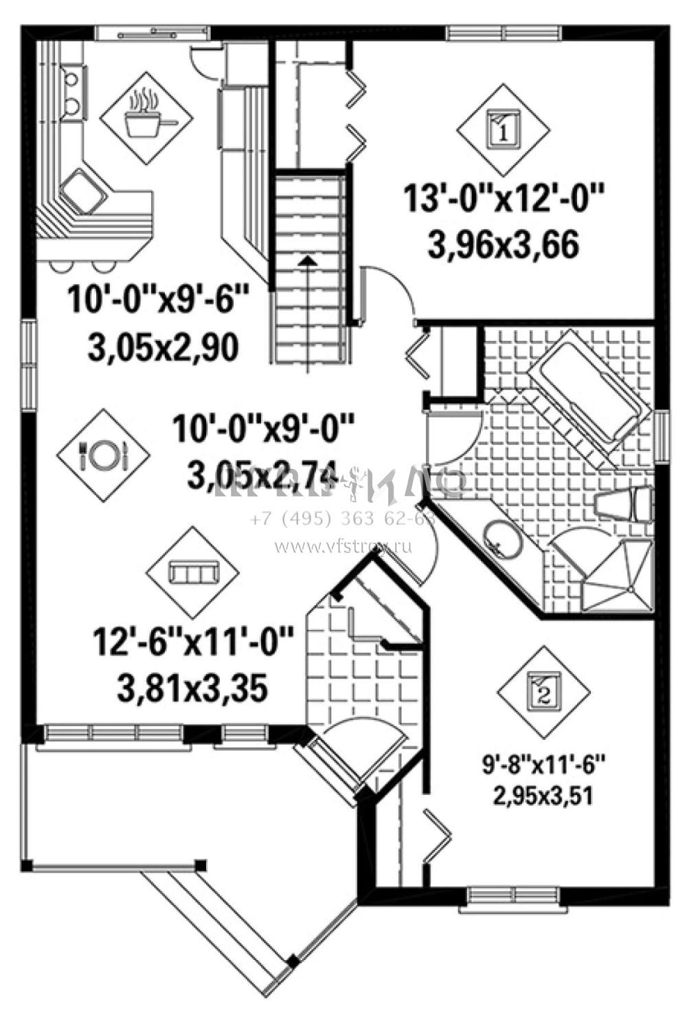 S5-90 (6146-00268) Это иностранный проект, для которого требуется адаптация под нормы, действующие в Российской Федерации. Вы видите проект дома в стиле Ранчо. В этом доме сочетаются черты сельской постройки и аскетичность лофта. Внутри жильцы смогут проводить время с максимальным комфортом. Обратим внимание, что сейчас на планировках все размеры представлены в футах. Для перевода в метры вам необходимо значение в футах умножить на 0,3048.
