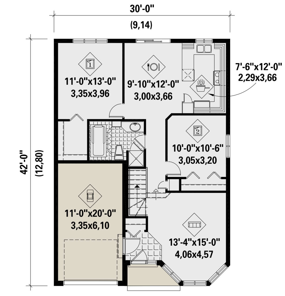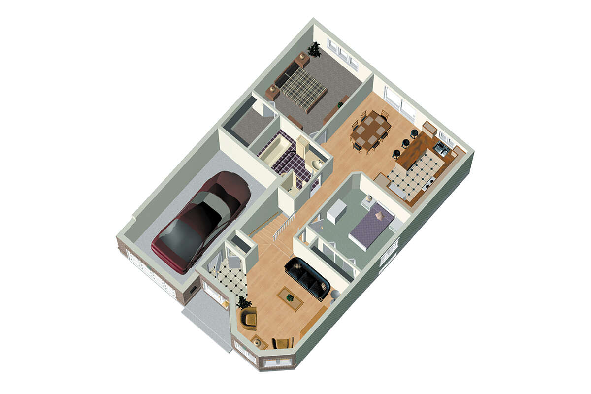 Проект одноэтажного дома с гаражом на одну машину в современном стиле S5-91 (6146-00412)