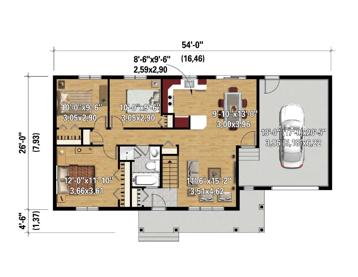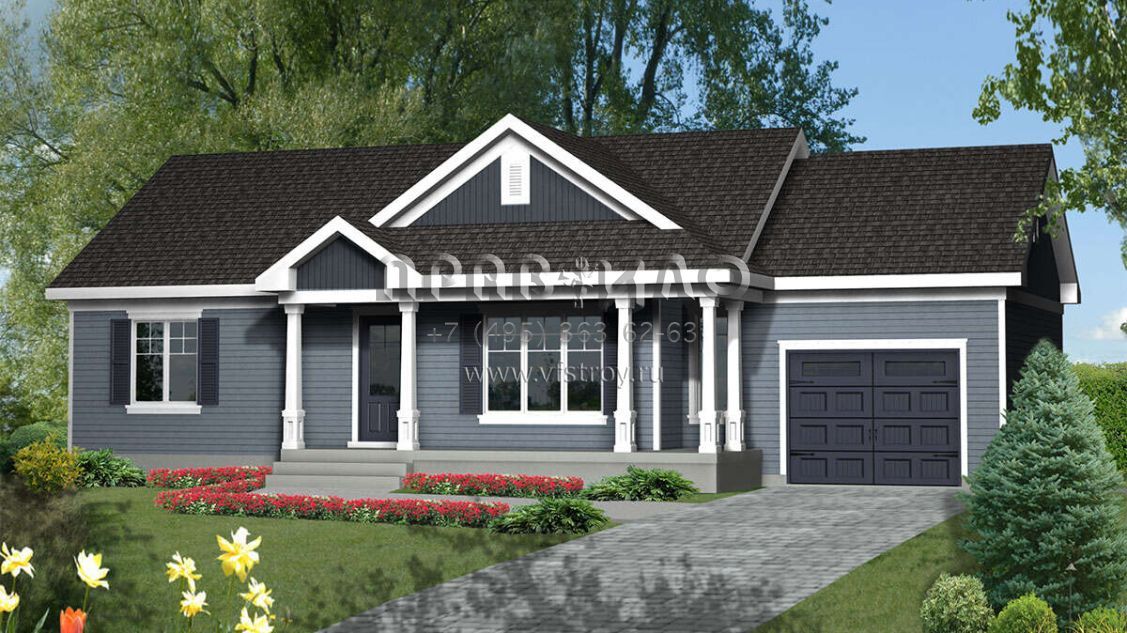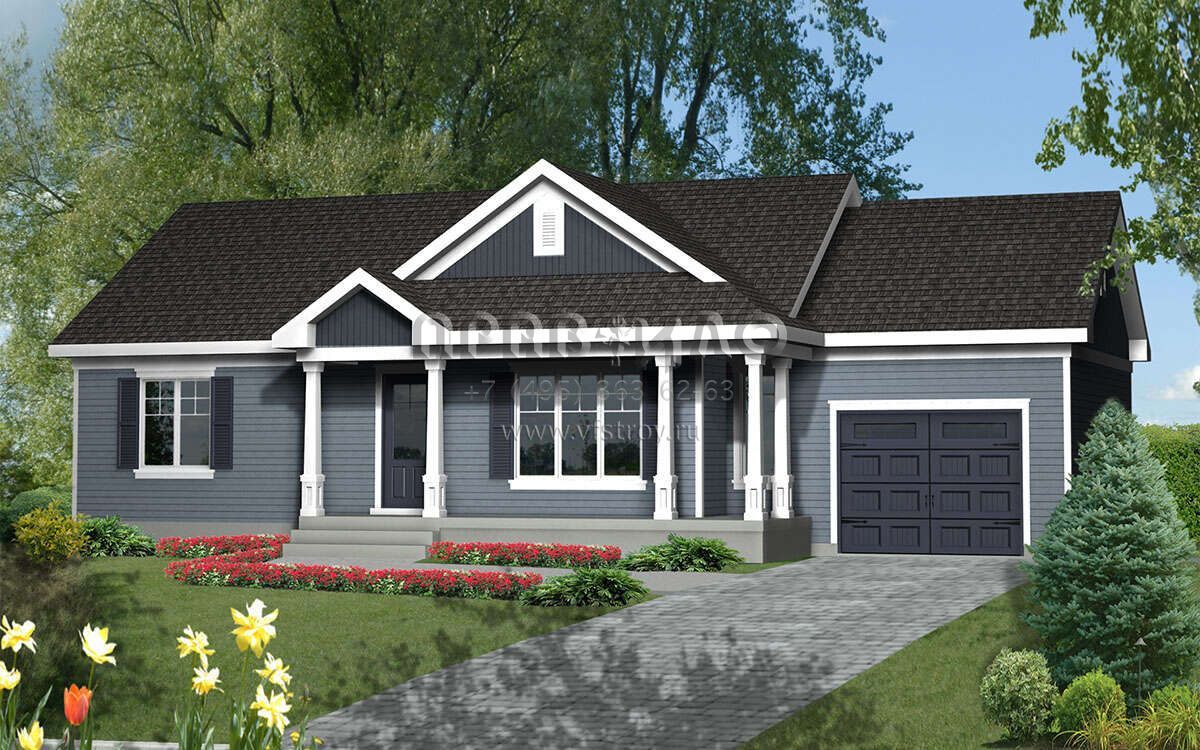 Проект одноэтажного дома с гаражом на одну машину в стиле Ранчо S5-92 (6146-00580)