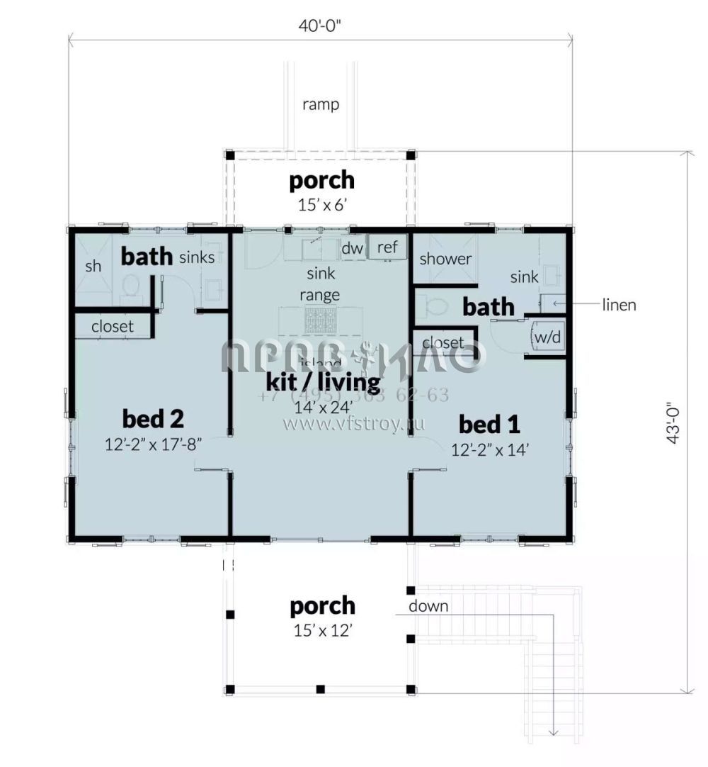 Проект одноэтажного дома без гаража в стиле Ранчо S5-93 (028-00178)