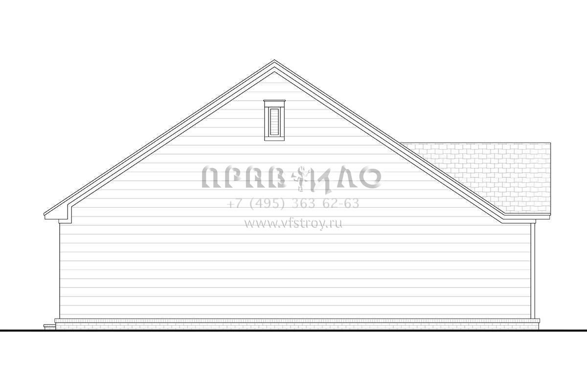 Это проект одноэтажного дома без гаража жилой площадью 93 кв.м. Длина дома 12.2 м, ширина 9.1 м, высота 6.7 м. В доме две спальни и два санузла.