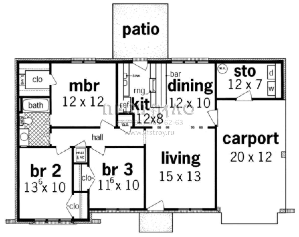 S5-93 (048-00011) Это иностранный проект, для которого требуется адаптация под нормы, действующие в Российской Федерации. Вы видите проект дома в стиле Ранчо. В этом доме сочетаются черты сельской постройки и аскетичность лофта. Внутри жильцы смогут проводить время с максимальным комфортом. Обратим внимание, что сейчас на планировках все размеры представлены в футах. Для перевода в метры вам необходимо значение в футах умножить на 0,3048.