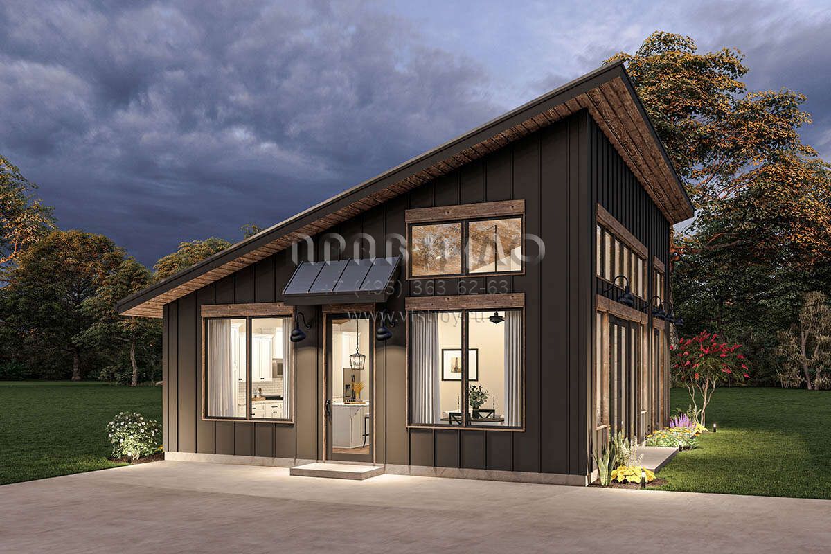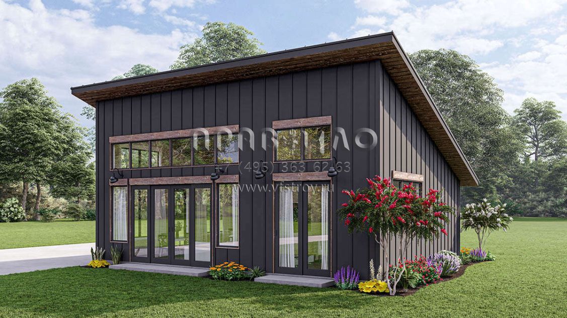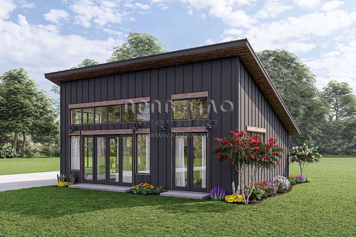 S5-93 (1462-00042) Это иностранный проект, для которого требуется адаптация под нормы, действующие в Российской Федерации. Вы видите проект дома в современном стиле. В этом доме сочетаются черты сельской постройки и аскетичность лофта. Внутри жильцы смогут проводить время с максимальным комфортом. Обратим внимание, что сейчас на планировках все размеры представлены в футах. Для перевода в метры вам необходимо значение в футах умножить на 0,3048.