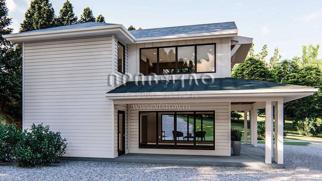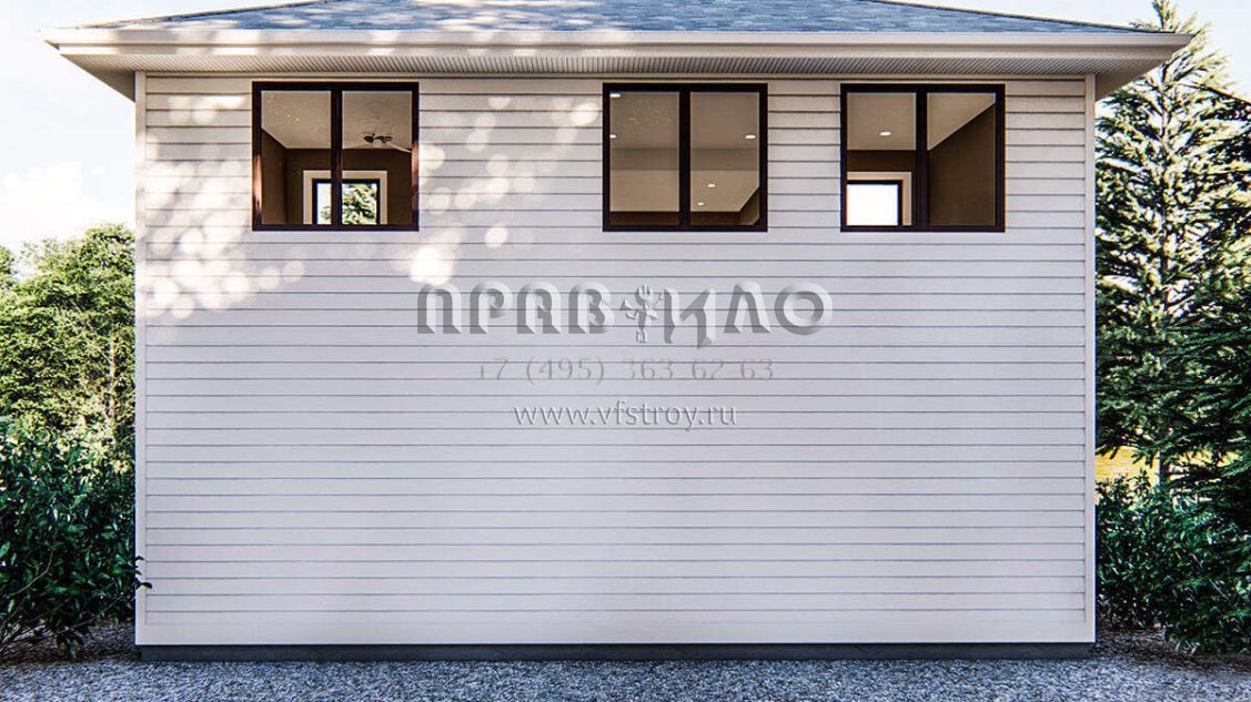Это проект двухэтажного дома без гаража жилой площадью 93 кв.м. Длина дома 11.3 м, ширина 8.8 м, высота 7.3 м. В доме одна спальня и один санузел.