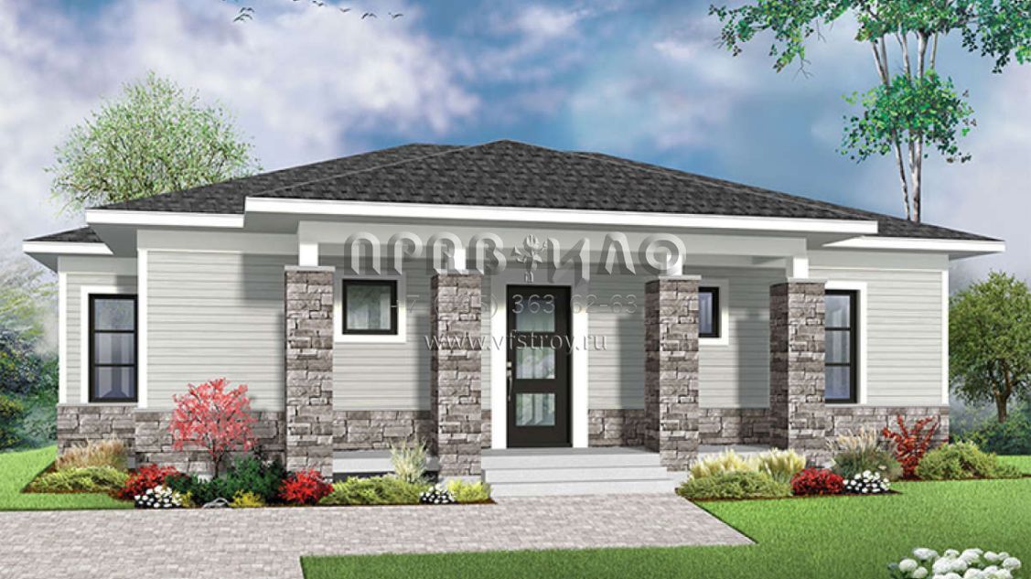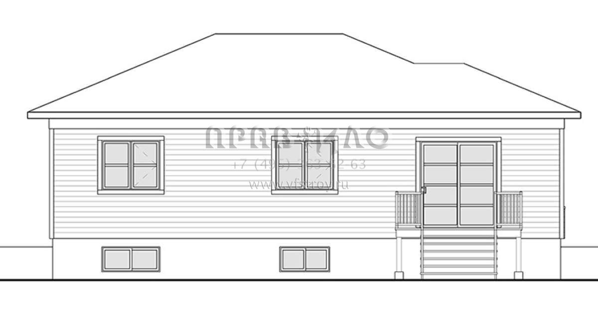 Это проект одноэтажного дома без гаража жилой площадью 94 кв.м. Длина дома 7.9 м, ширина 12.2 м, высота 4.9 м. В доме две спальни и один санузел.