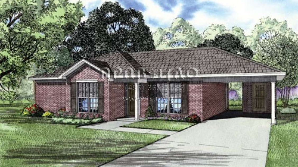 Проект одноэтажного дома с гаражом на одну машину в стиле Ранчо S5-94 (110-00646)
