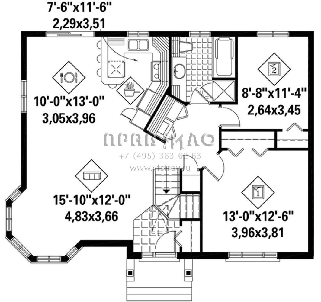 S5-94 (6146-00317) Это иностранный проект, для которого требуется адаптация под нормы, действующие в Российской Федерации. Вы видите проект дома в стиле Ранчо. В этом доме сочетаются черты сельской постройки и аскетичность лофта. Внутри жильцы смогут проводить время с максимальным комфортом. Обратим внимание, что сейчас на планировках все размеры представлены в футах. Для перевода в метры вам необходимо значение в футах умножить на 0,3048.