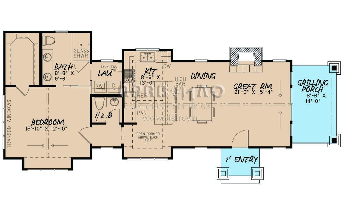 Проект одноэтажного дома без гаража в американском стиле S5-94 (8318-00220)