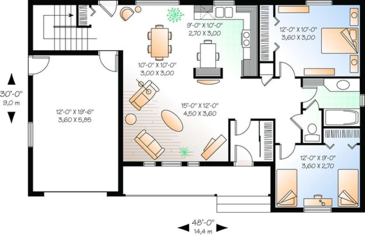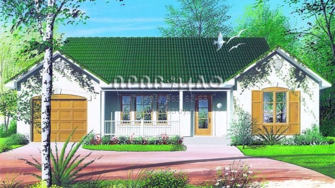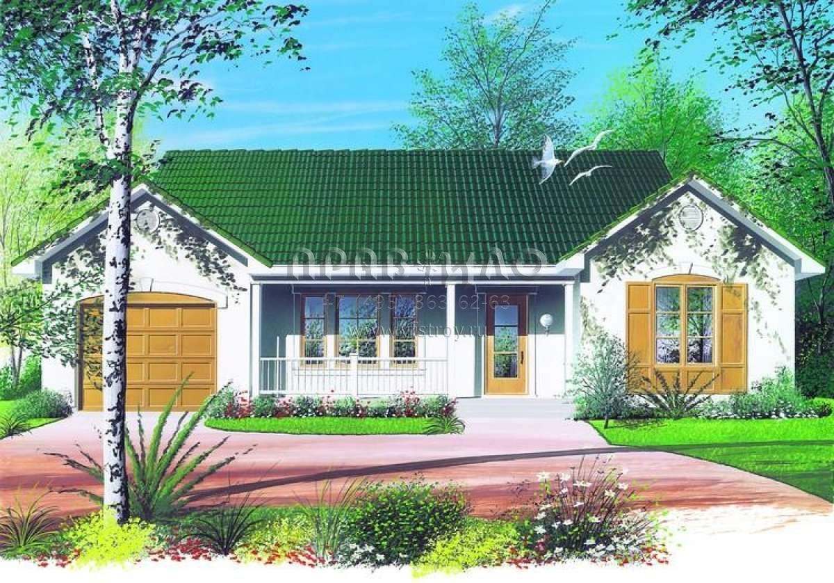 Проект одноэтажного дома с гаражом на одну машину в стиле Ранчо S5-95 (034-00304)