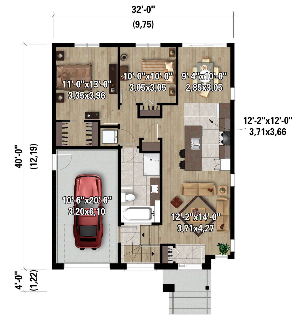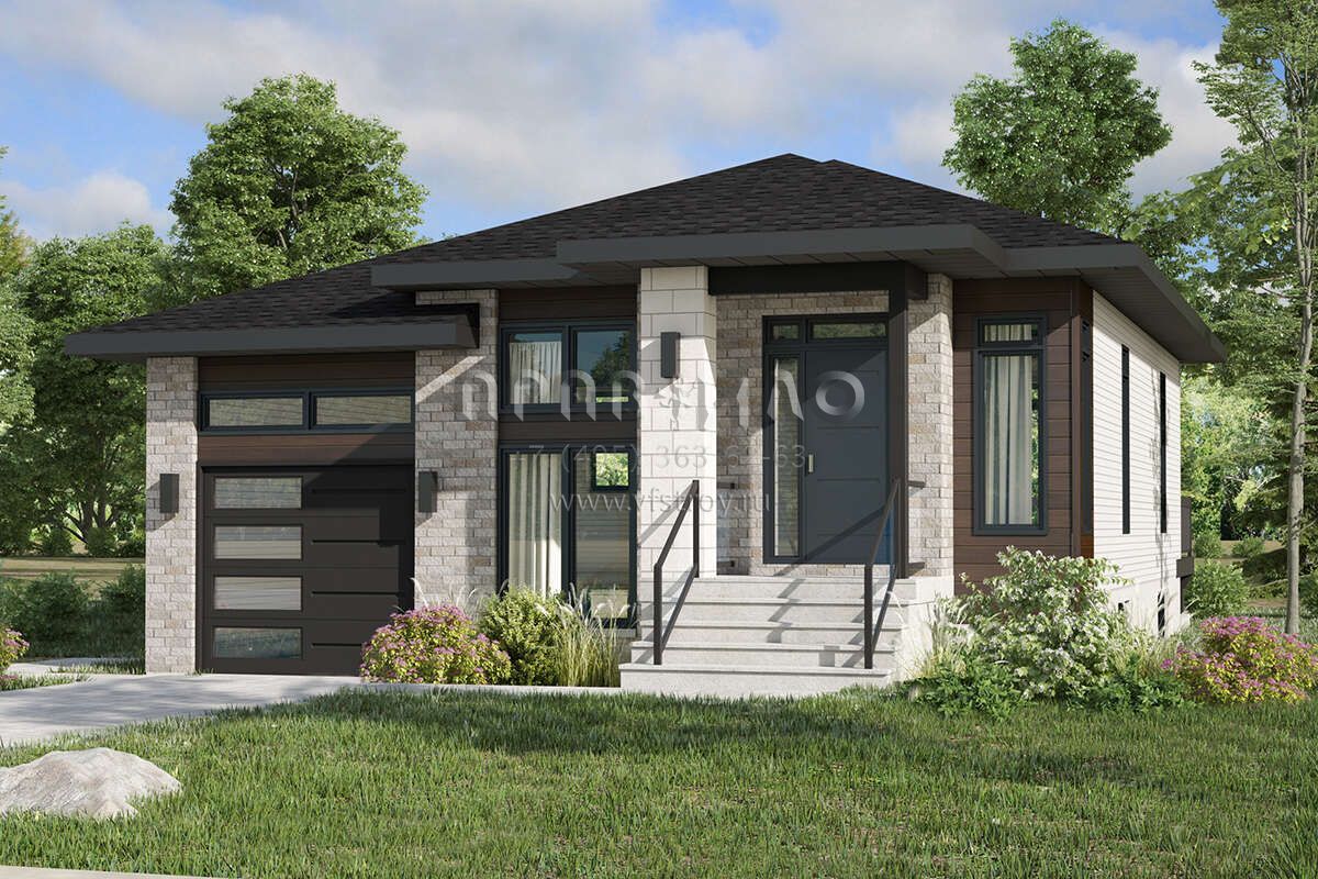 Проект одноэтажного дома с гаражом на одну машину в современном стиле S5-95 (6146-00499)