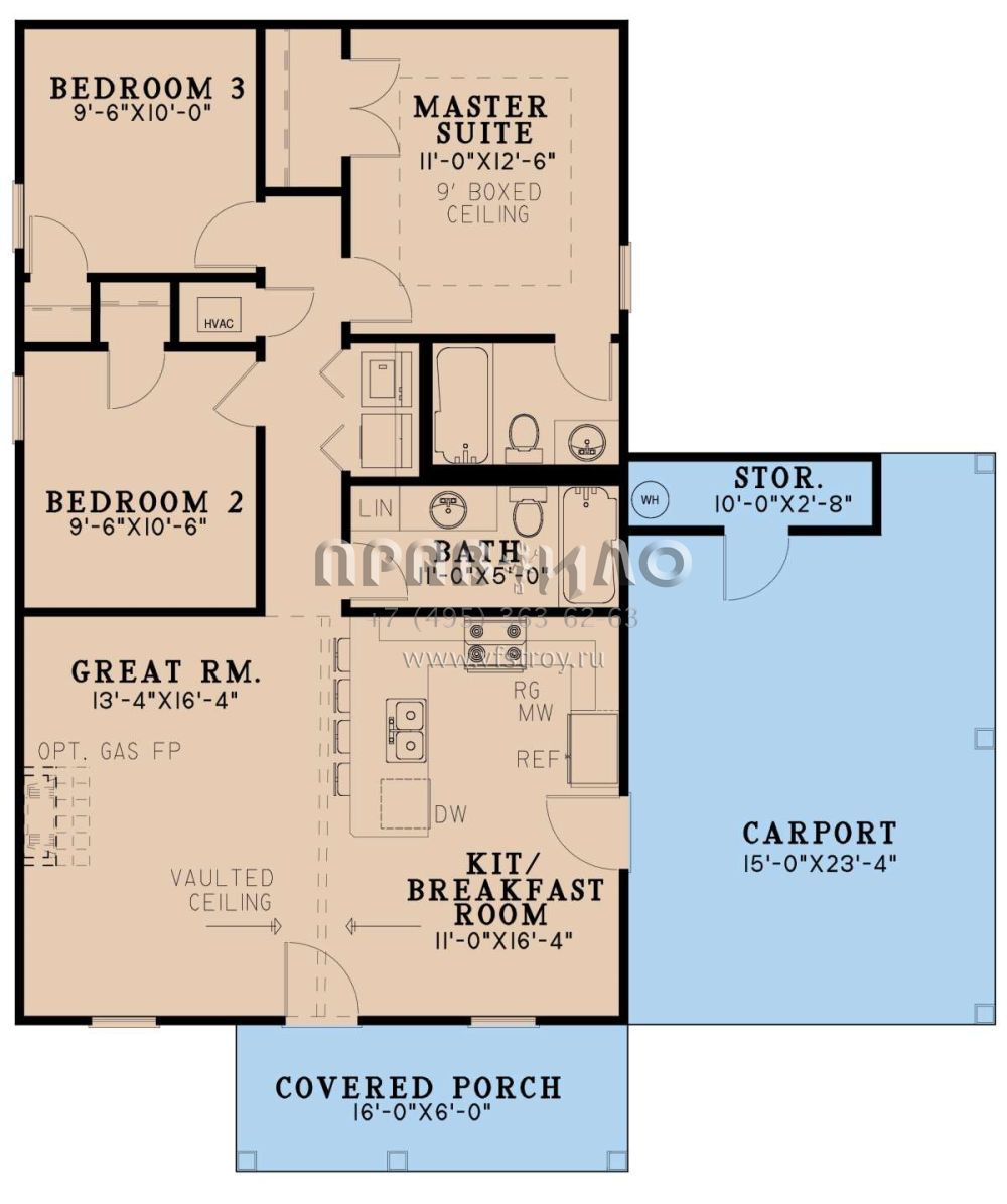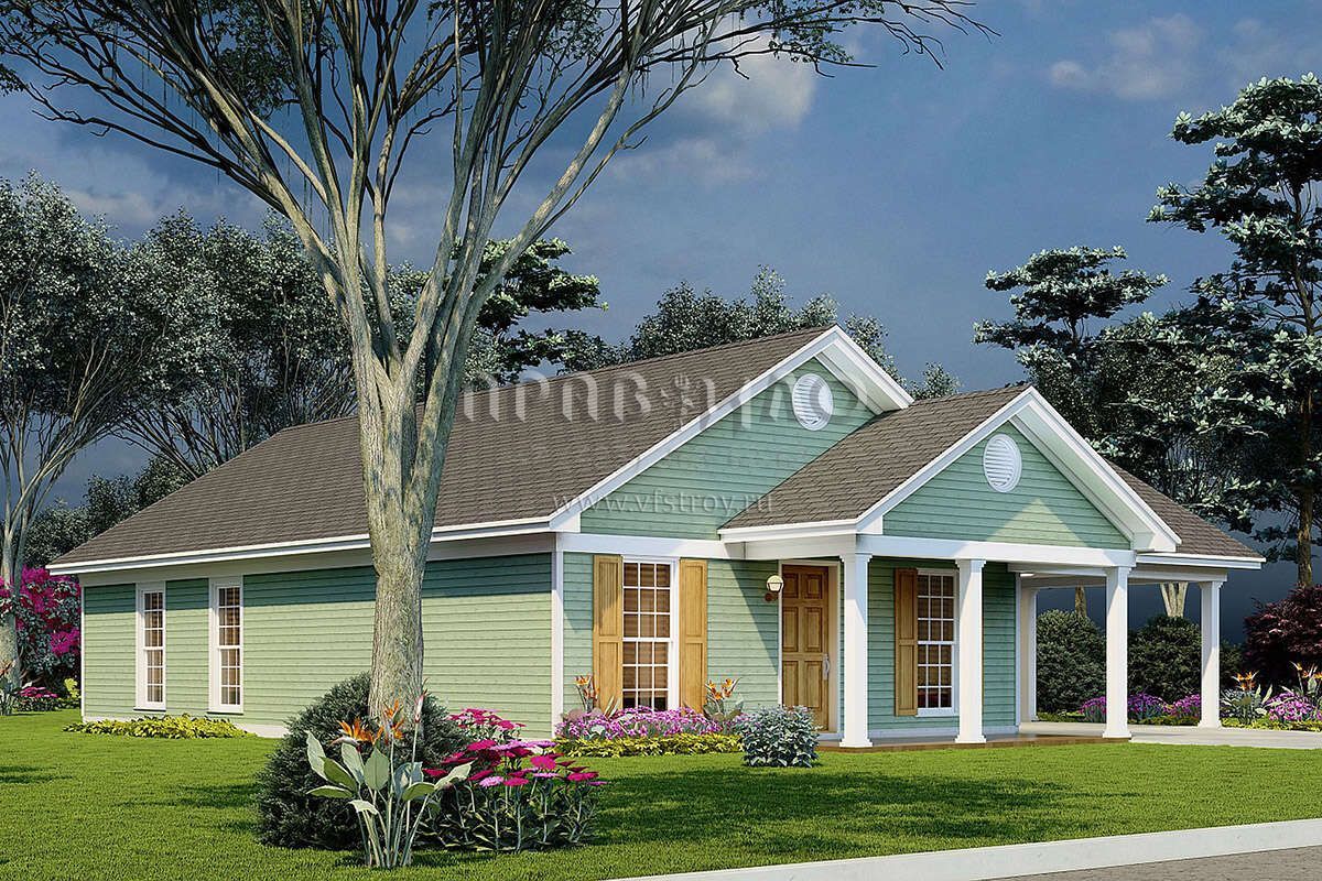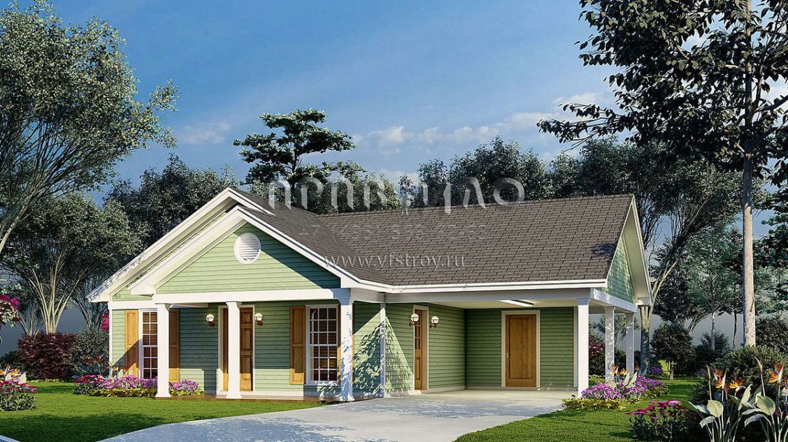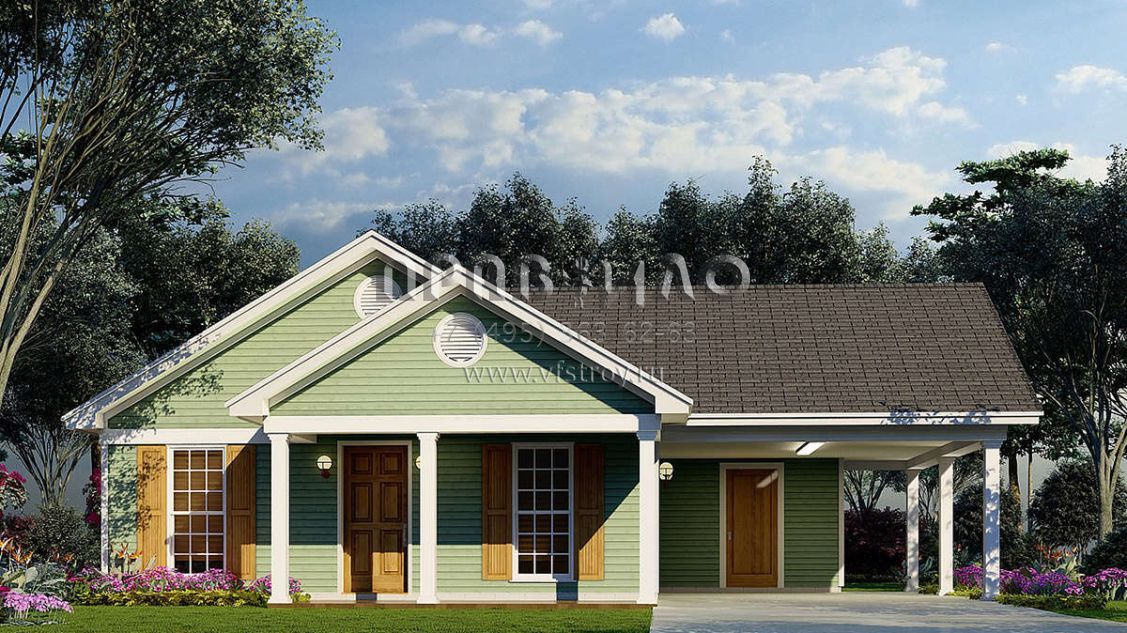 Проект одноэтажного дома с гаражом на одну машину в стиле Ранчо S5-95 (8318-00224)