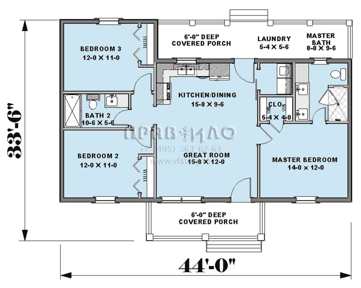 Проект одноэтажного дома без гаража в стиле Ранчо S5-96 (1776-00108)