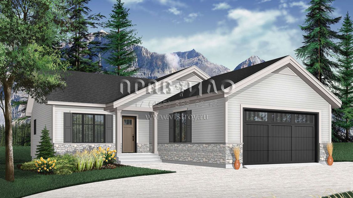 Проект одноэтажного дома с гаражом на две машины в скандинавском стиле S5-97 (034-01171)
