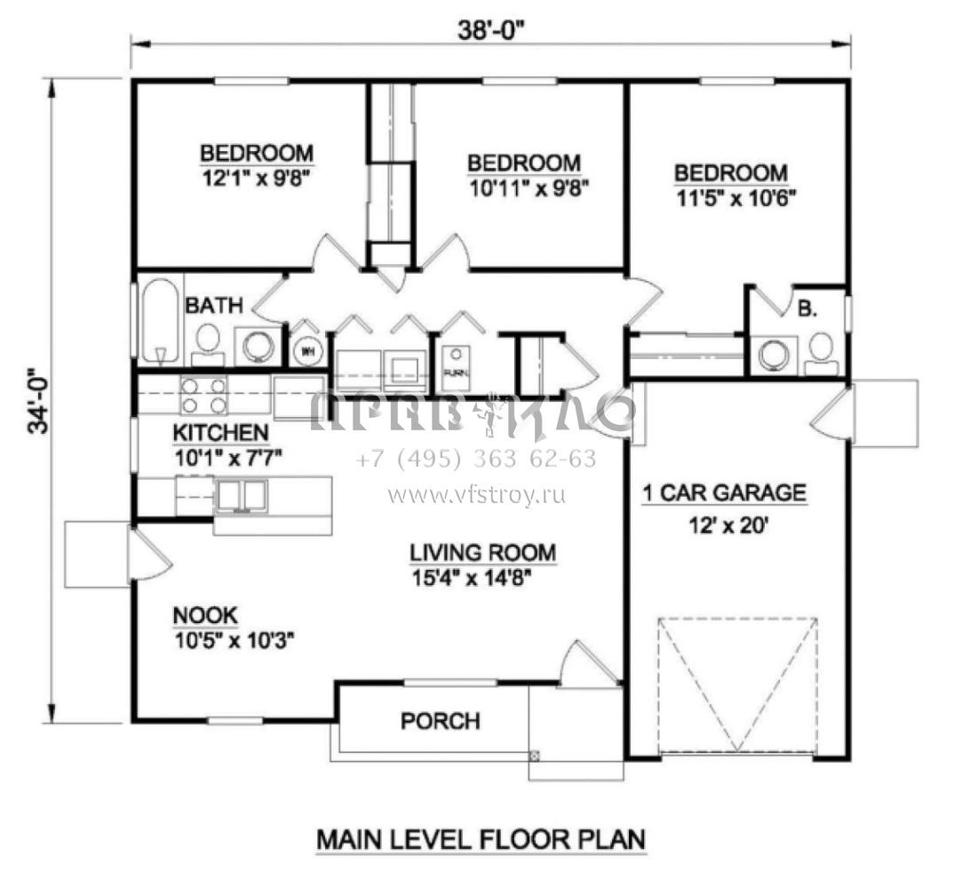 Проект одноэтажного дома с гаражом на одну машину в стиле Ранчо S5-98 (340-00015)