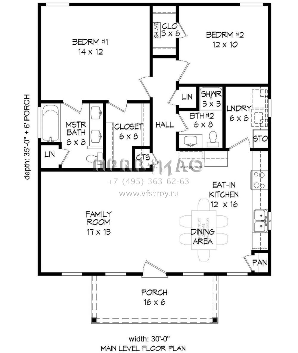 Проект одноэтажного дома без гаража в стиле Ранчо S5-98 (940-00088)