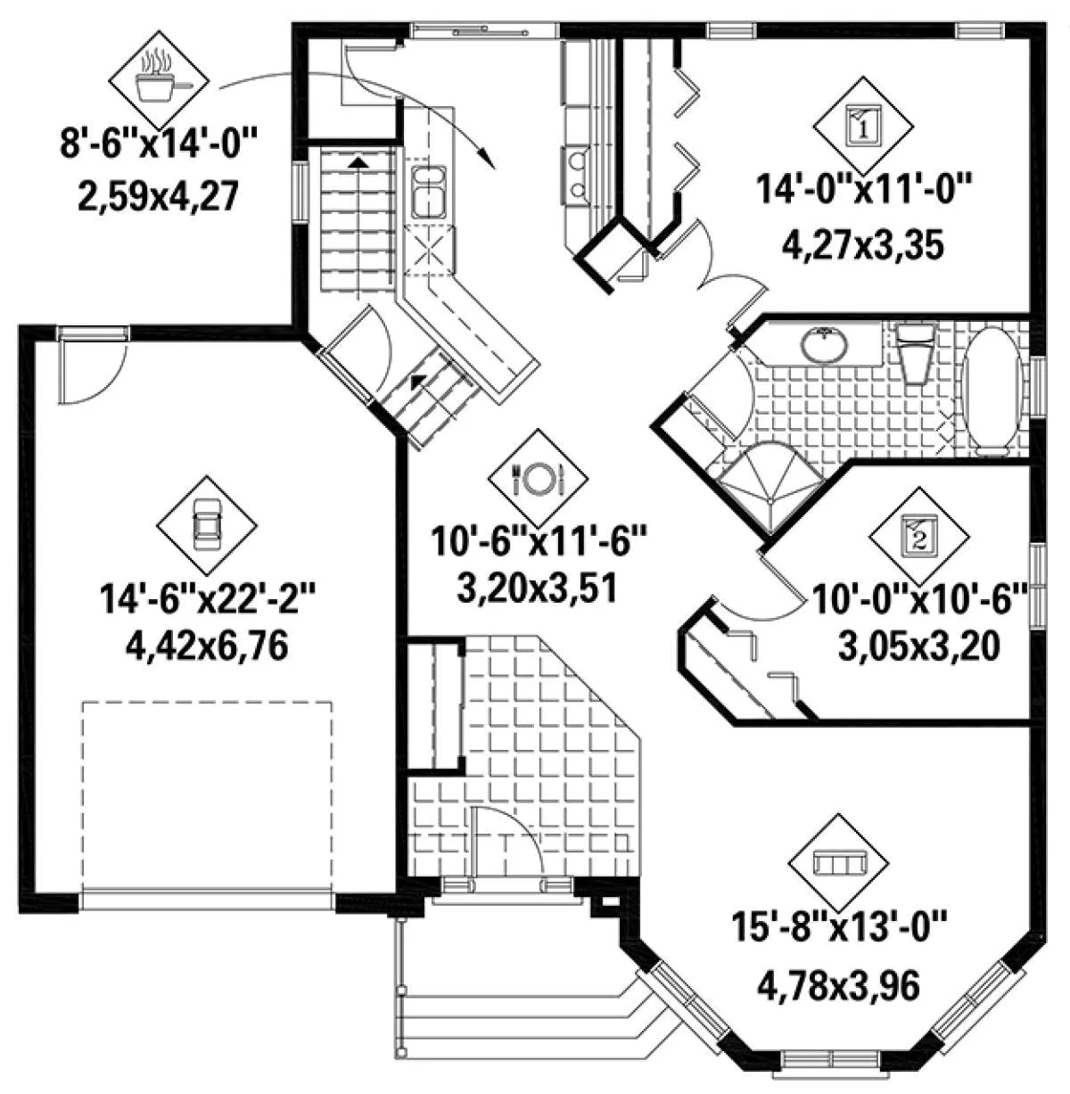 Проект одноэтажного дома с гаражом на одну машину в английском стиле S5-99 (6146-00299)