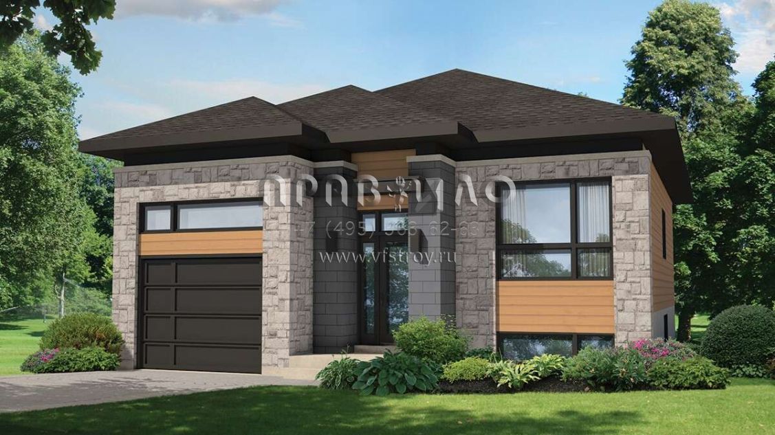 Проект одноэтажного дома с гаражом на одну машину в современном стиле S5-99 (6146-00388)