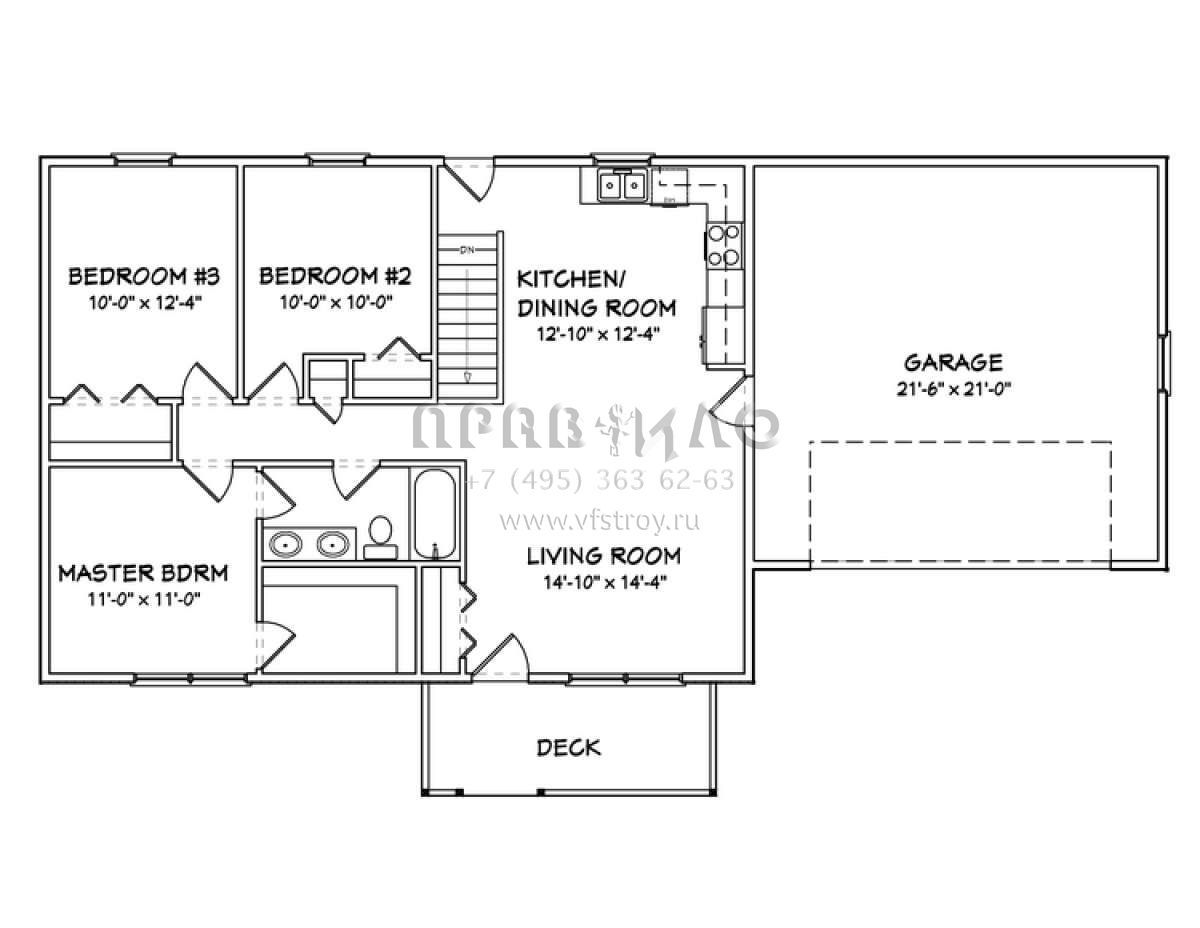 S5-99 (849-00020) Это иностранный проект, для которого требуется адаптация под нормы, действующие в Российской Федерации. Вы видите проект дома в стиле Ранчо. В этом доме сочетаются черты сельской постройки и аскетичность лофта. Внутри жильцы смогут проводить время с максимальным комфортом. Обратим внимание, что сейчас на планировках все размеры представлены в футах. Для перевода в метры вам необходимо значение в футах умножить на 0,3048.