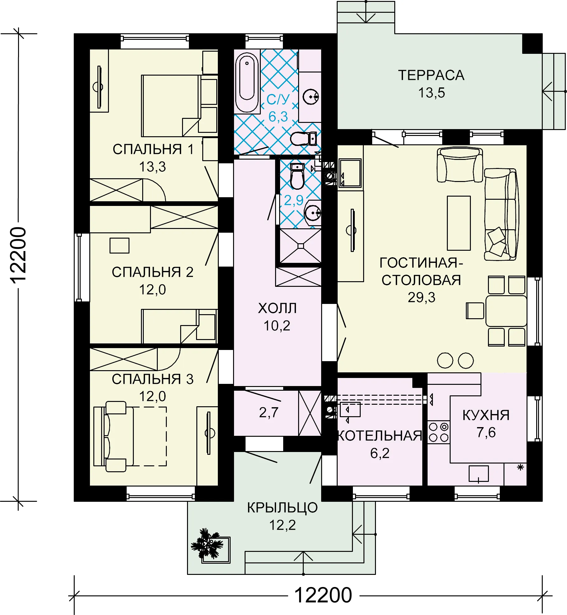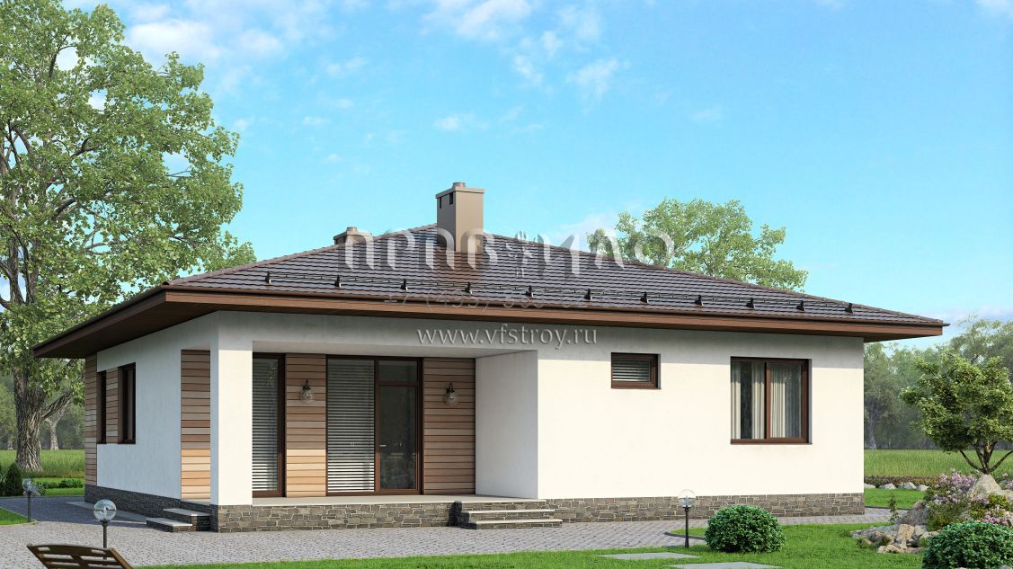 Проект одноэтажного загородного дома из газобетона S7-108 (3-43b)