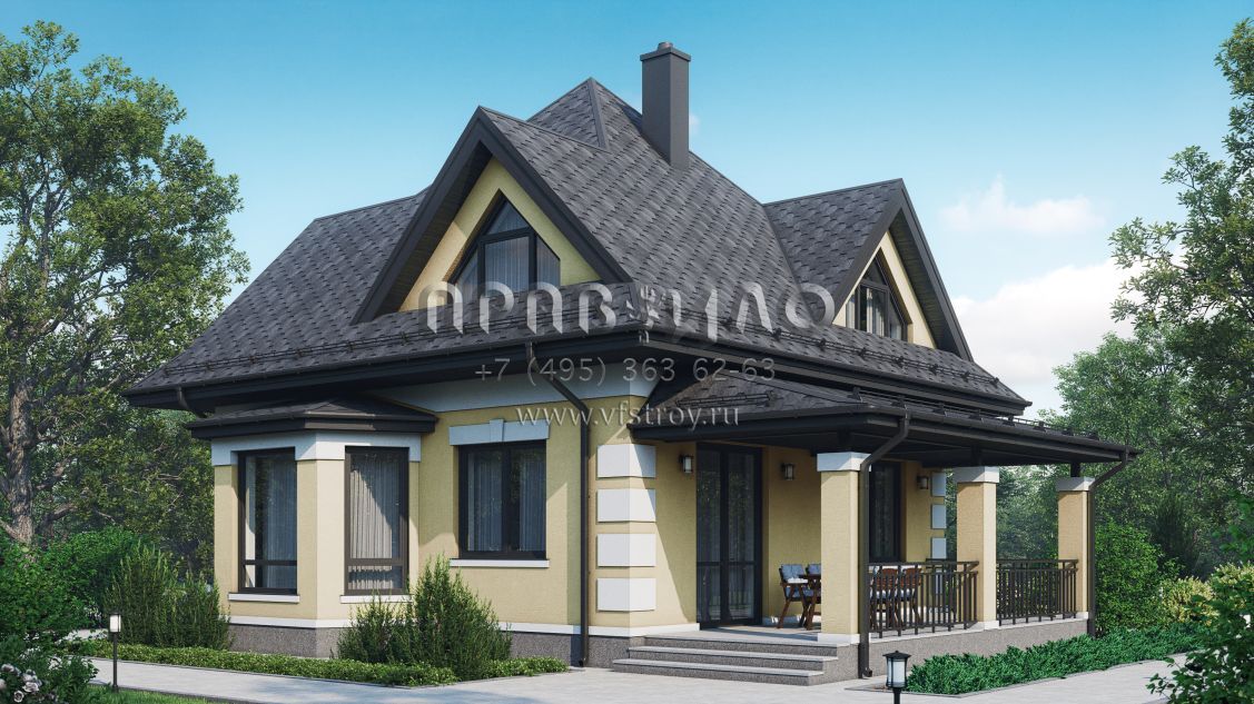 Экономичный дом с террасой и шатровой крышей S7-114 (3-13а2)