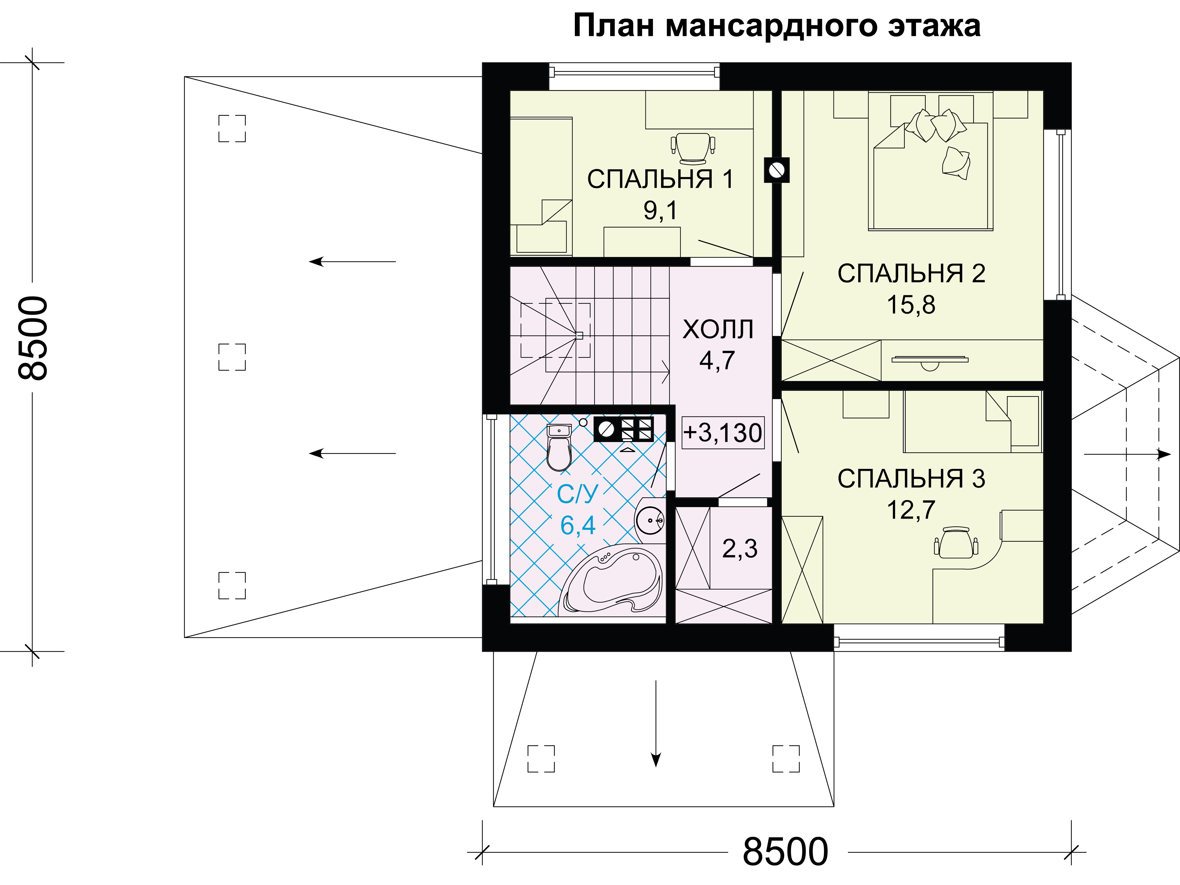 Экономичный загородный дом с навесом для автомобиля S7-116 (3-13c)