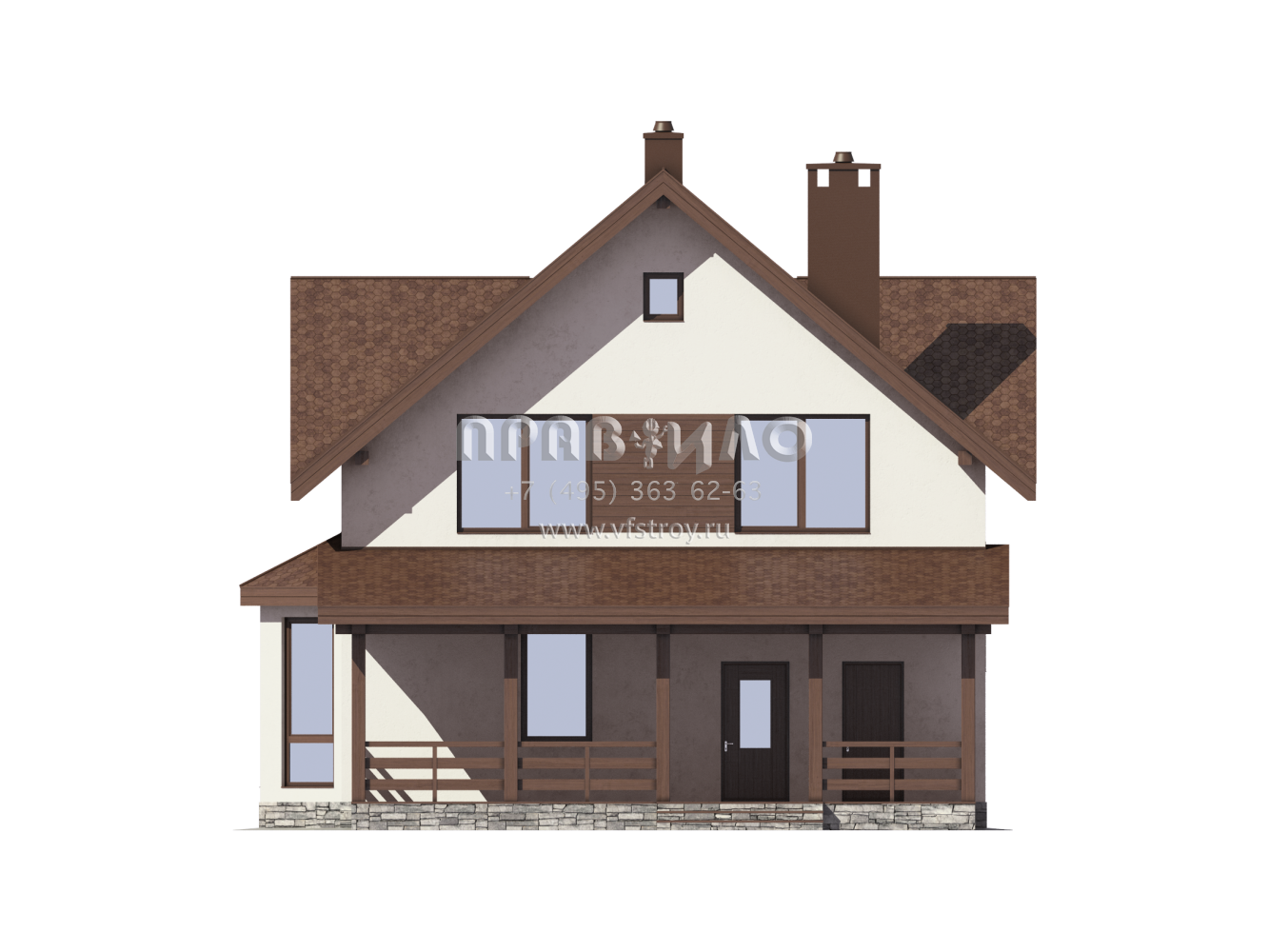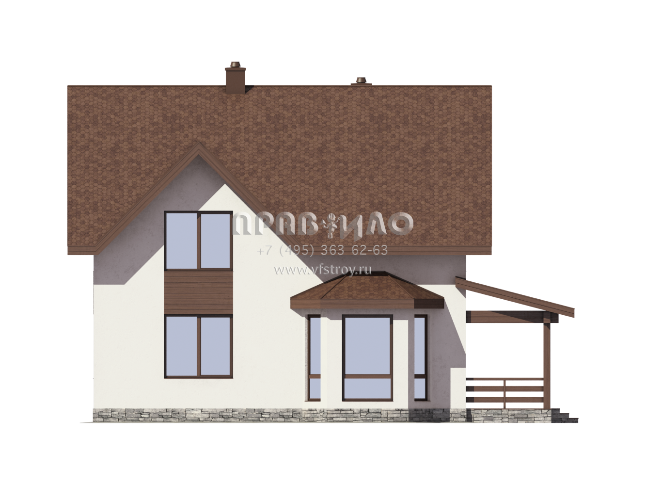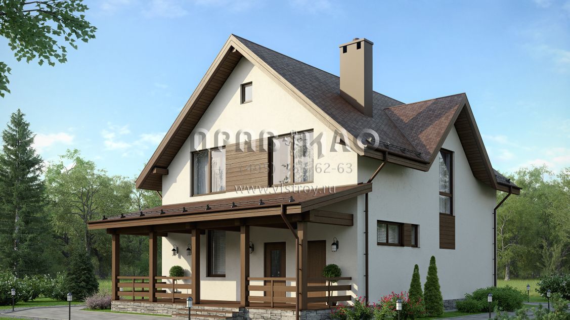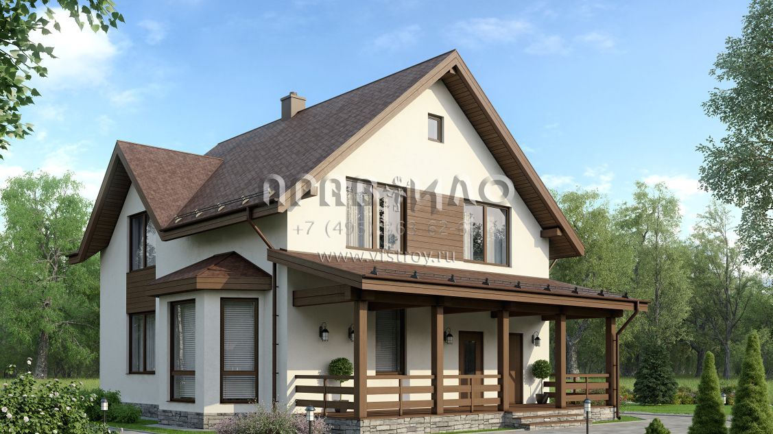 Проект загородного дома с террасой и эркером S7-164 (3-52)
