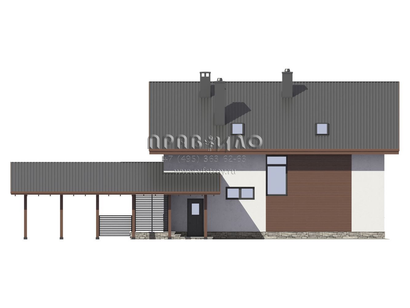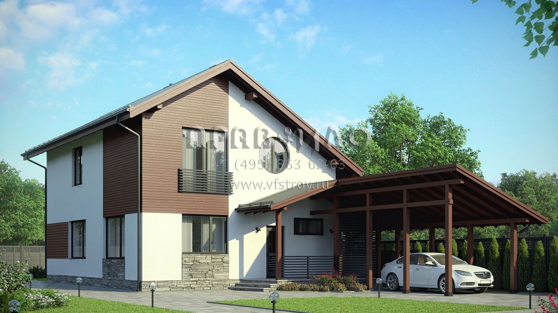 Экономичный загородный дом с навесом S7-167 (3-32а)