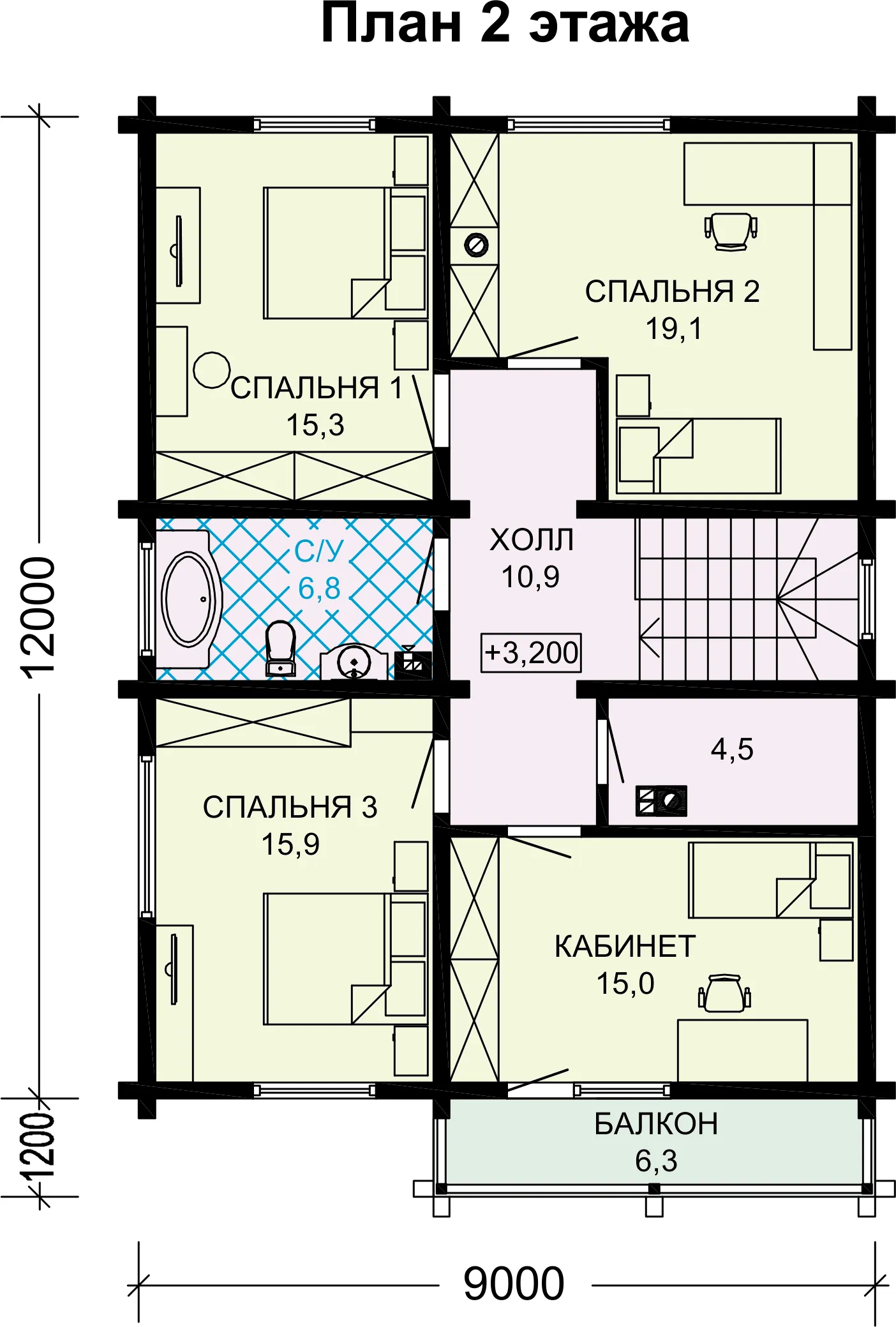Проект загородного дома из бруса с балконом S7-176 (1-54)