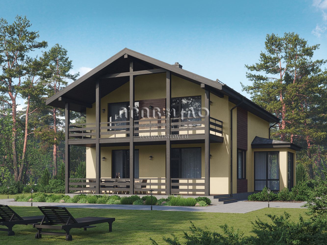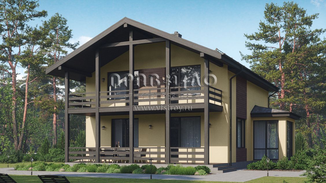 Двухэтажный дом из газобетона с большой террасой на втором этаже S7-178 (3-62а)