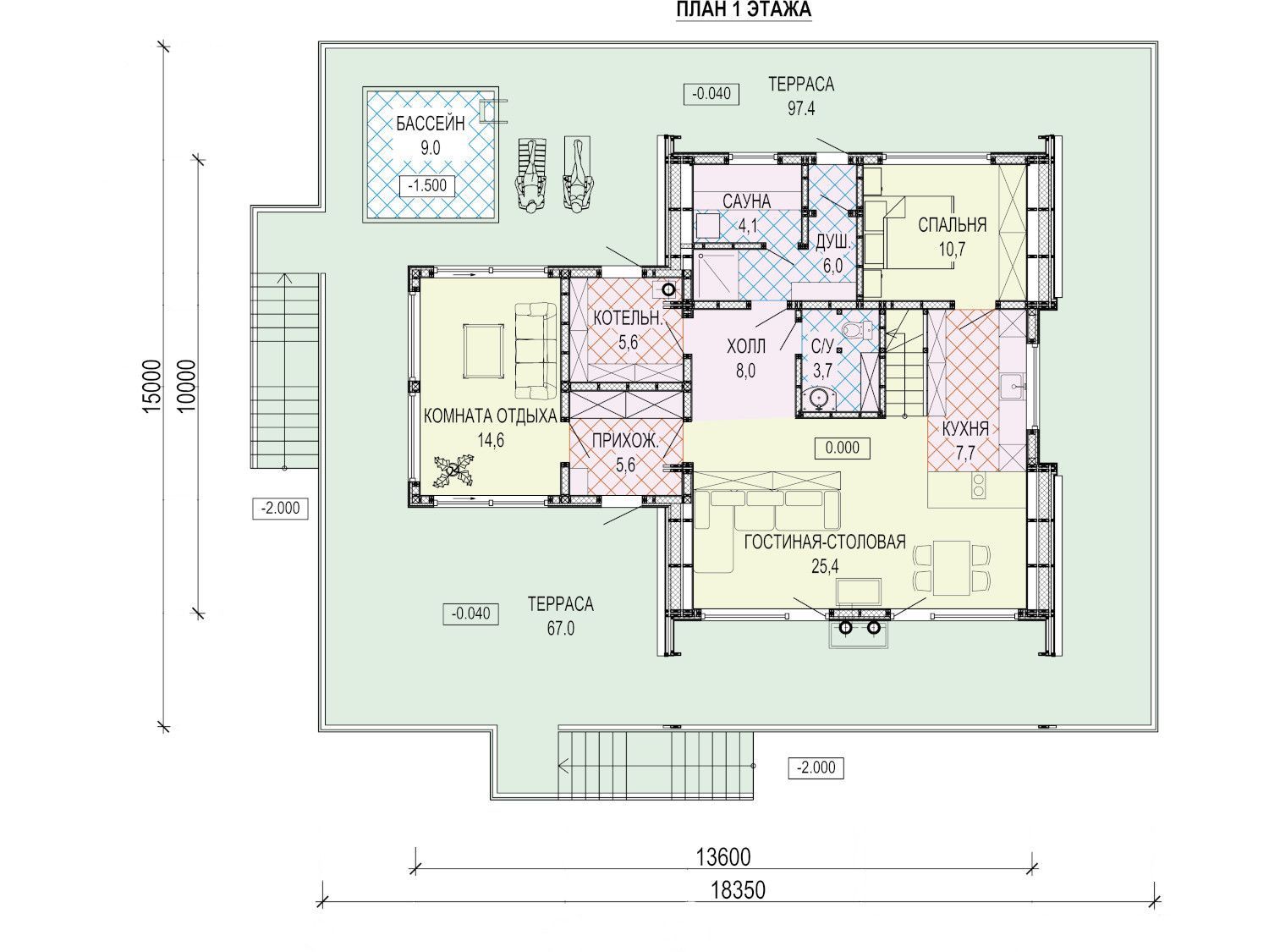 Дом A-frame с обходной террасой и бассейном S7-195 (4-04)