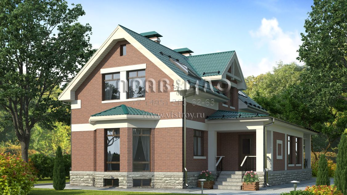 Проект кирпичного загородного дома с мансардой для узкого участка S7-209 (2-13)