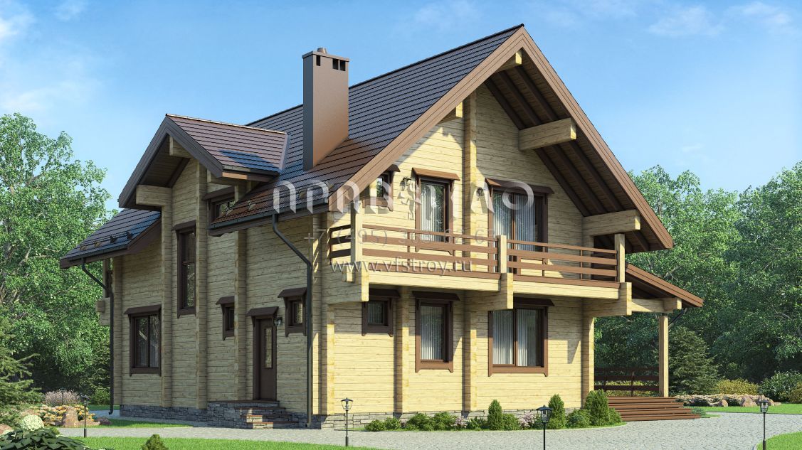 Проект брусового дома с широкой террасой S7-215 (1-40b)