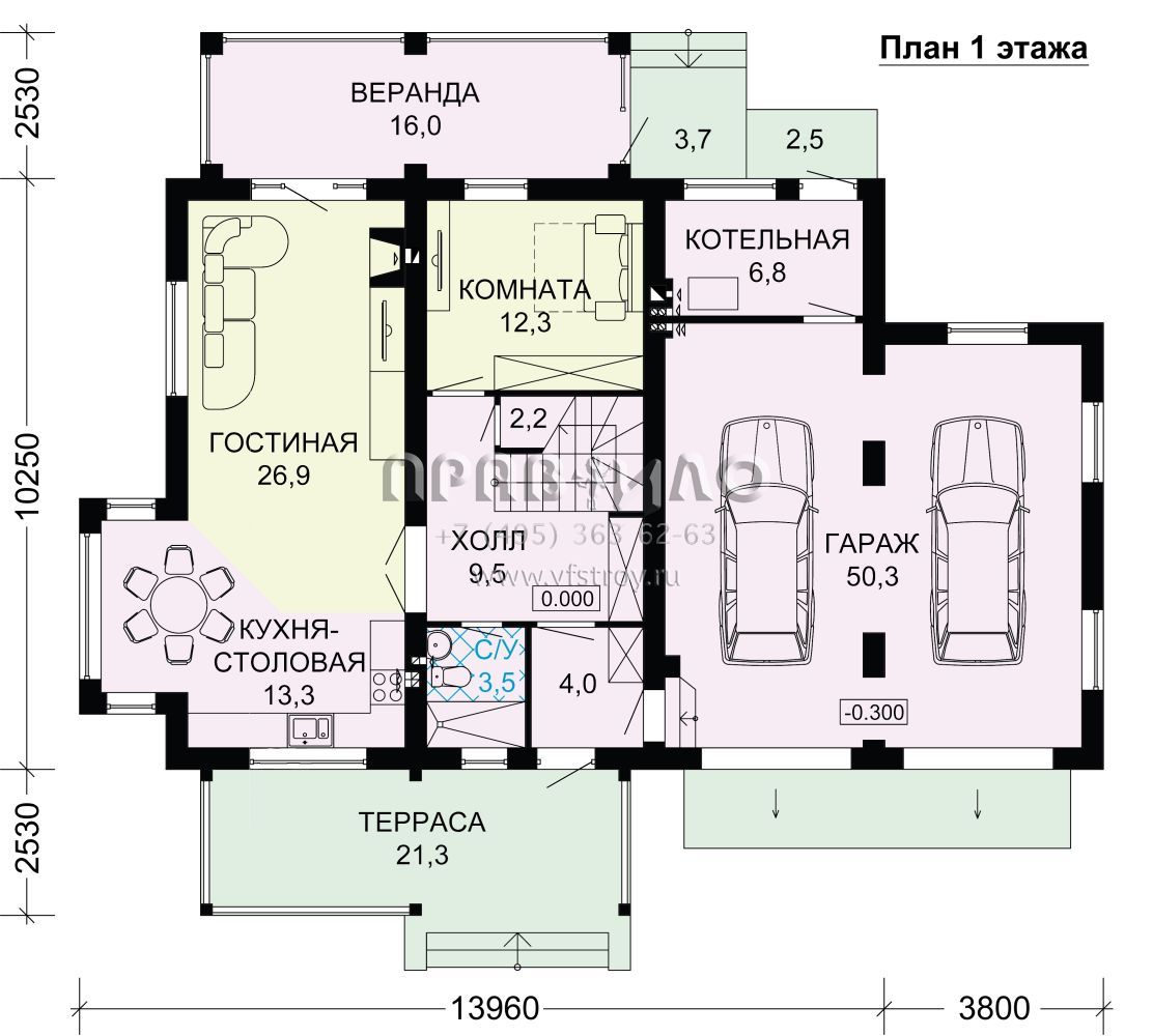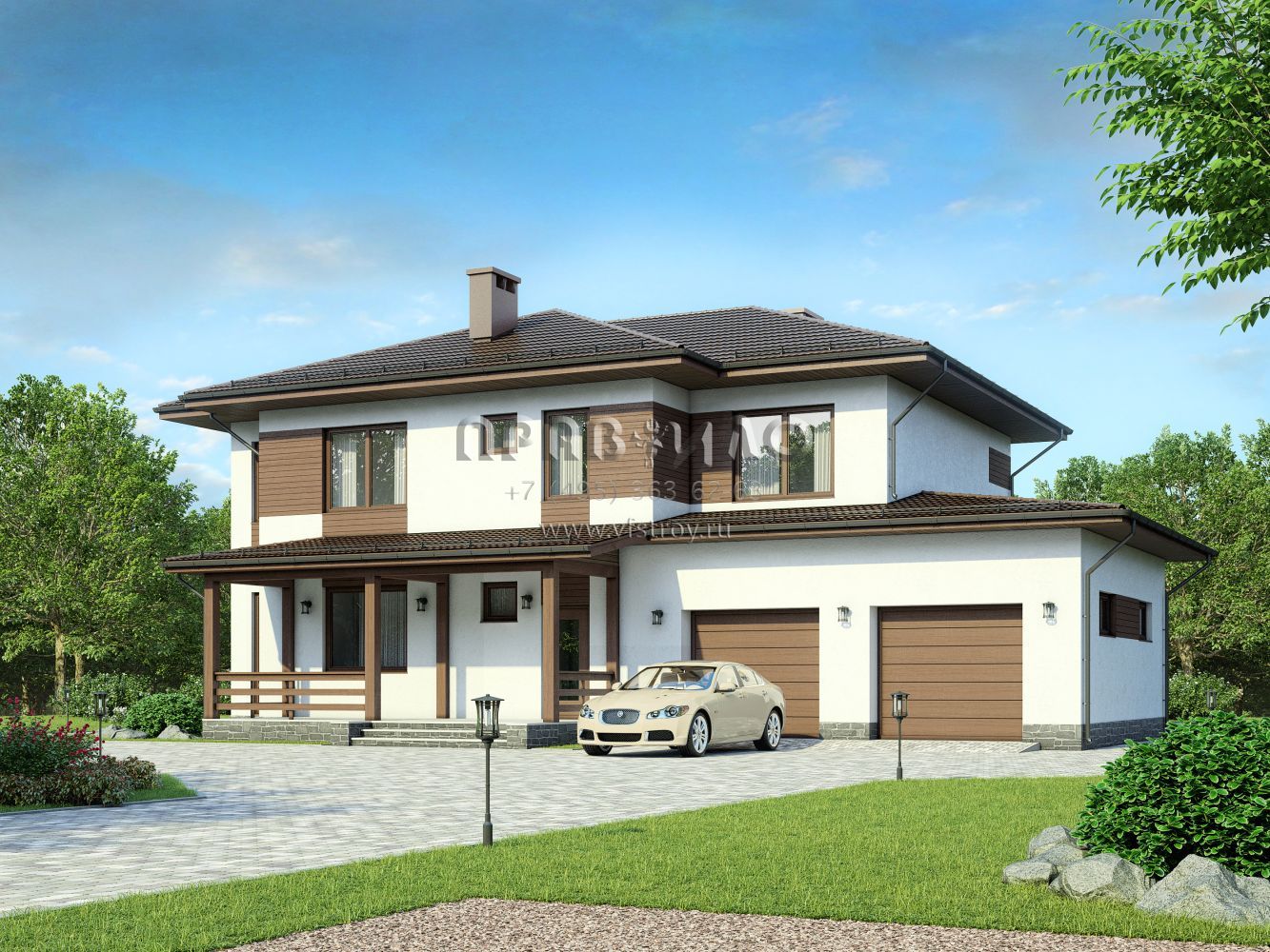 Современный загородный дом из газобетона с двойным гаражом S7-249 (3-48)