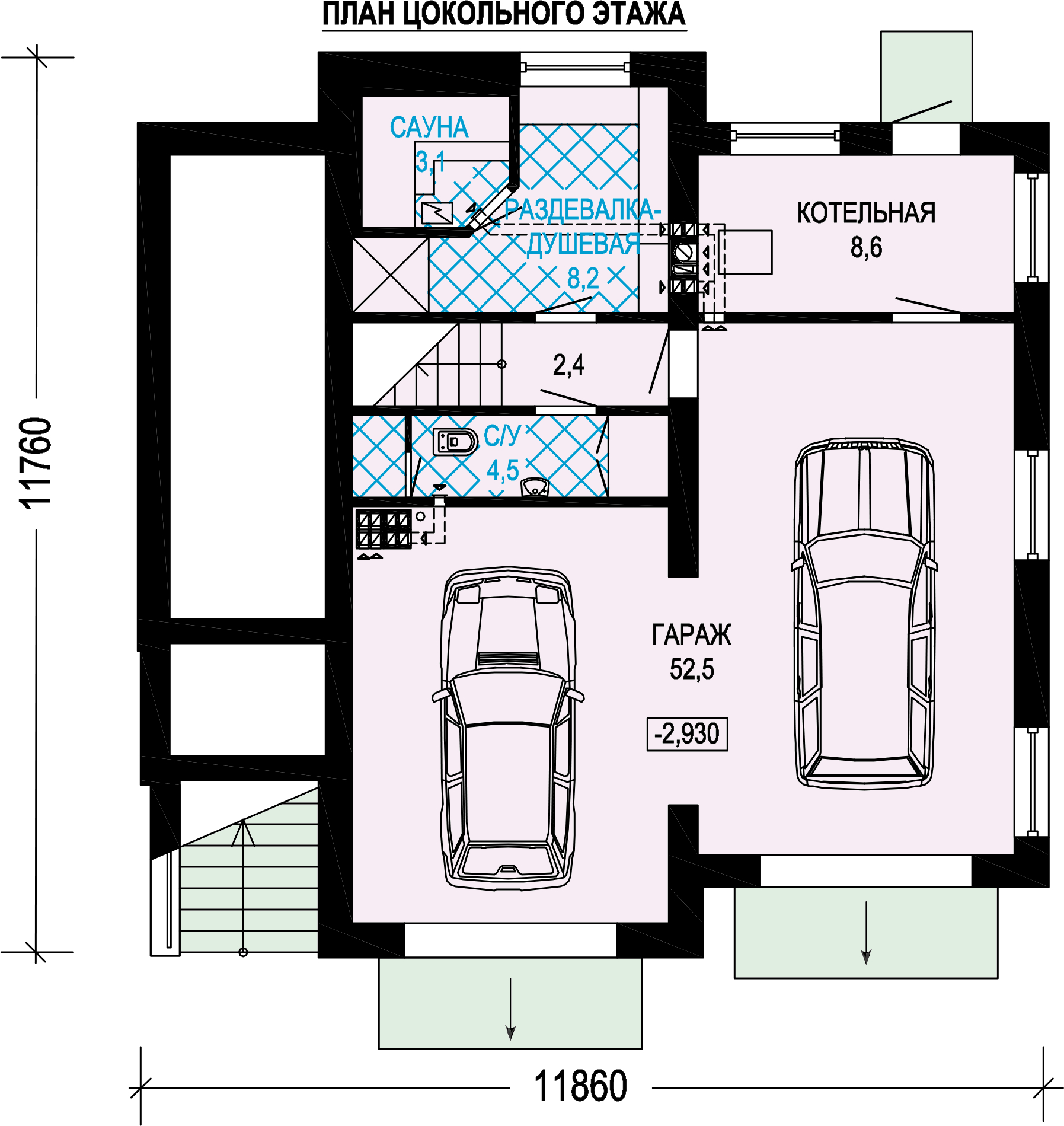 Проект трехэтажного дома с двойным гаражом S7-261 (5-07c)
