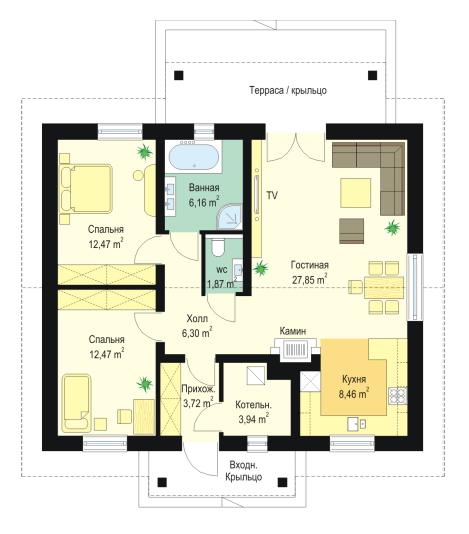 | Возможный материал кровли | металлочерепица, гибкая черепица, керамическая черепица, композитная черепица, цементно-песчаная черепица, фальцевая кровля |