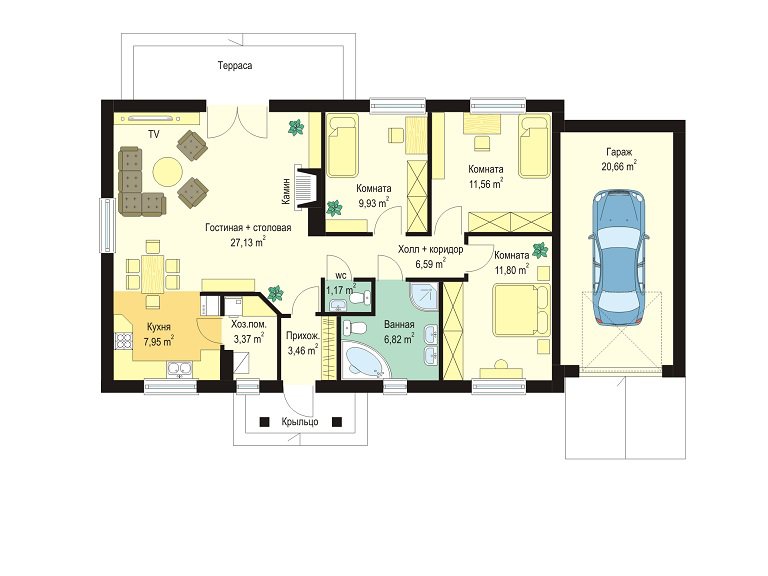 Проект комфортного частного дома S8-110-4 (Солнечный с Гаражом)