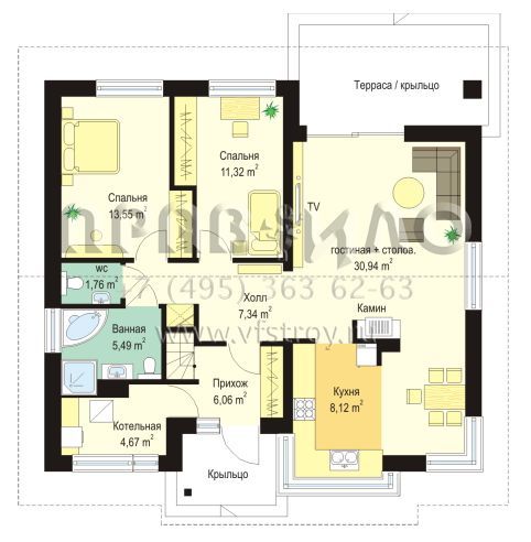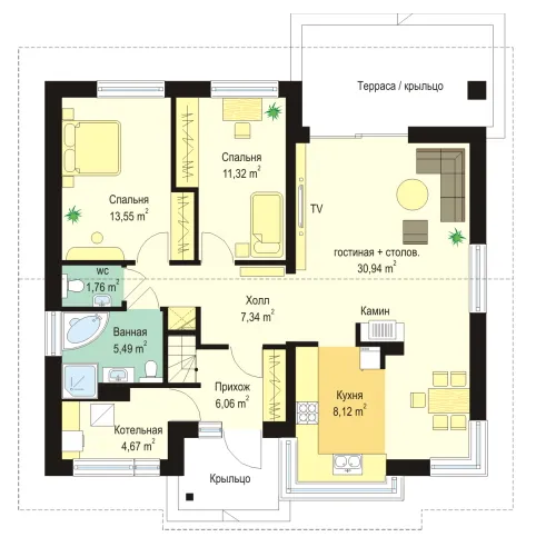 Проект коттеджа для маленькой семьи S8-114 (Дом для Троих)