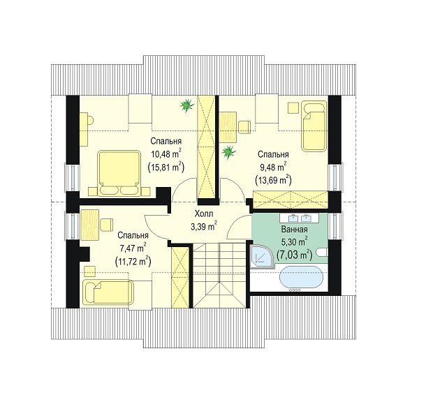 | Возможный материал кровли | металлочерепица, гибкая черепица, керамическая черепица, композитная черепица, цементно-песчаная черепица, фальцевая кровля |