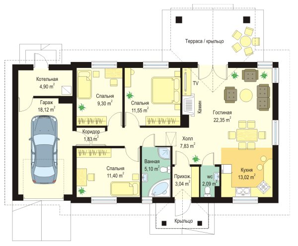 | Гараж | 1 машина |