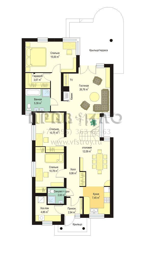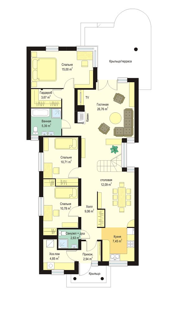 | Возможный материал кровли | металлочерепица, гибкая черепица, керамическая черепица, композитная черепица, цементно-песчаная черепица, фальцевая кровля |