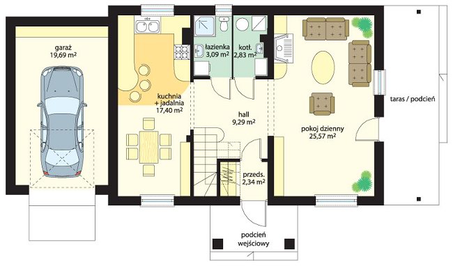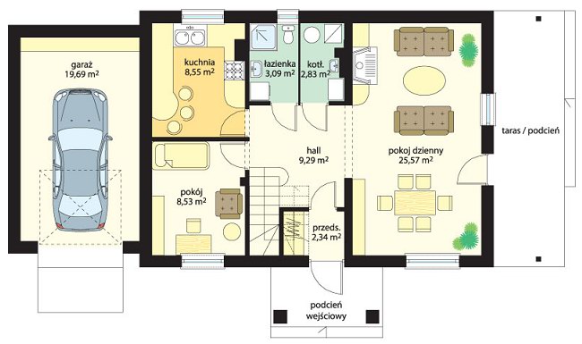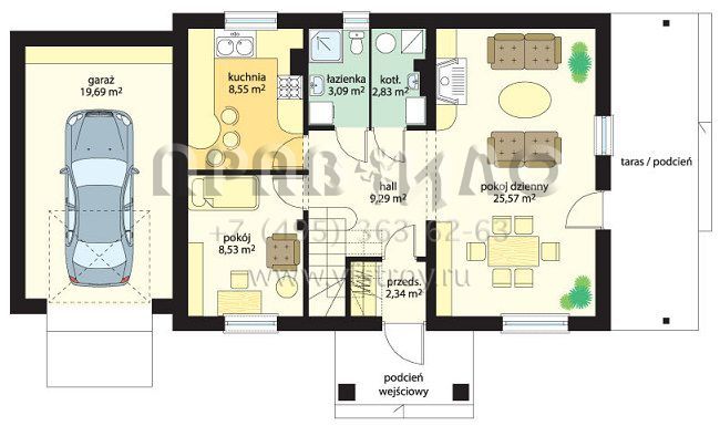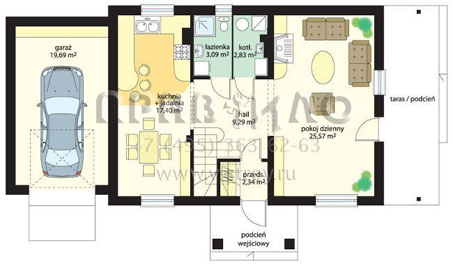 Проект загородного частного дома с гаражом S8-144-2 (Радостный с Гаражом)